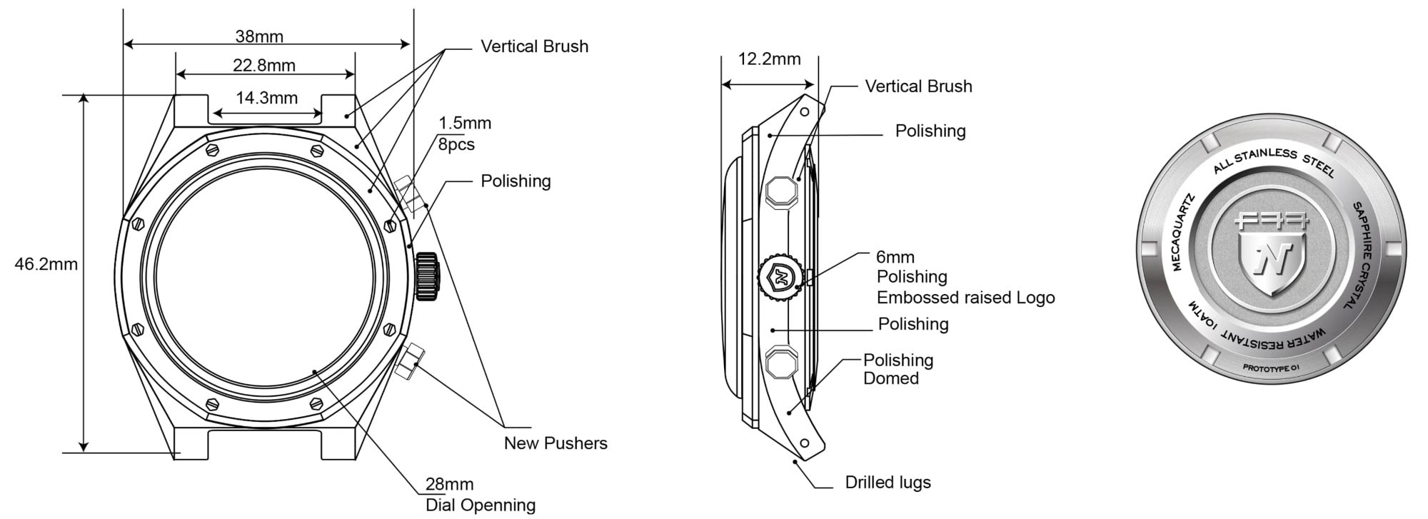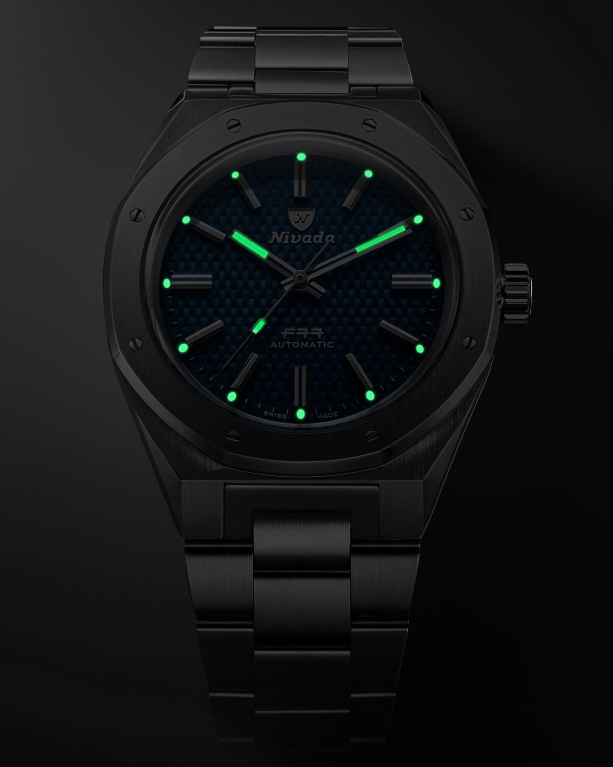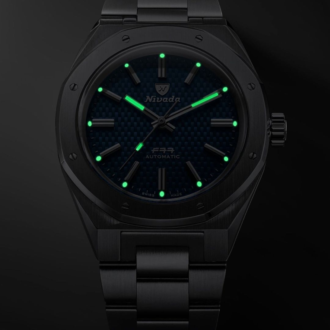 And now, the first F77 Chrono Mecaquartz. Ever. The F77 has firmly earned its place in our modern collection, so evolving it into a chronograph felt both natural and true to our chronograph DNA. Because the F77 never existed as a Chrono Mecaquartz before, this is not a re-edition, it’s a brand-new creation. The F77 Chrono Mecaquartz Blue Woven Dial brings Nivada Grenchen’s 1977 icon into the world of modern sport-chic chronographs. Its signature blue woven dial immediately recalls the original F77 texture, now framed by two snailed sub-registers and the emblematic riveted bezel. Built on a compact 38 mm 316L stainless-steel case with brushed and polished finishes, and downward-sloping lugs, it wears comfortably on almost any wrist. Inside, the VK64 mecaquartz caliber delivers around three years of battery autonomy while offering the smooth, mechanical-like sweep of the chronograph seconds hand. This hybrid architecture pairs quartz precision for timekeeping with a mechanical chronograph module for the start–stop–reset action, giving the watch a distinctly “mechanical” feel on the wrist. A double-domed sapphire crystal, solid screw-down caseback and 10 ATM water resistance complete a chronograph designed for daily wear, whether on its integrated steel bracelet, Velcro canvas, or rubber strap.