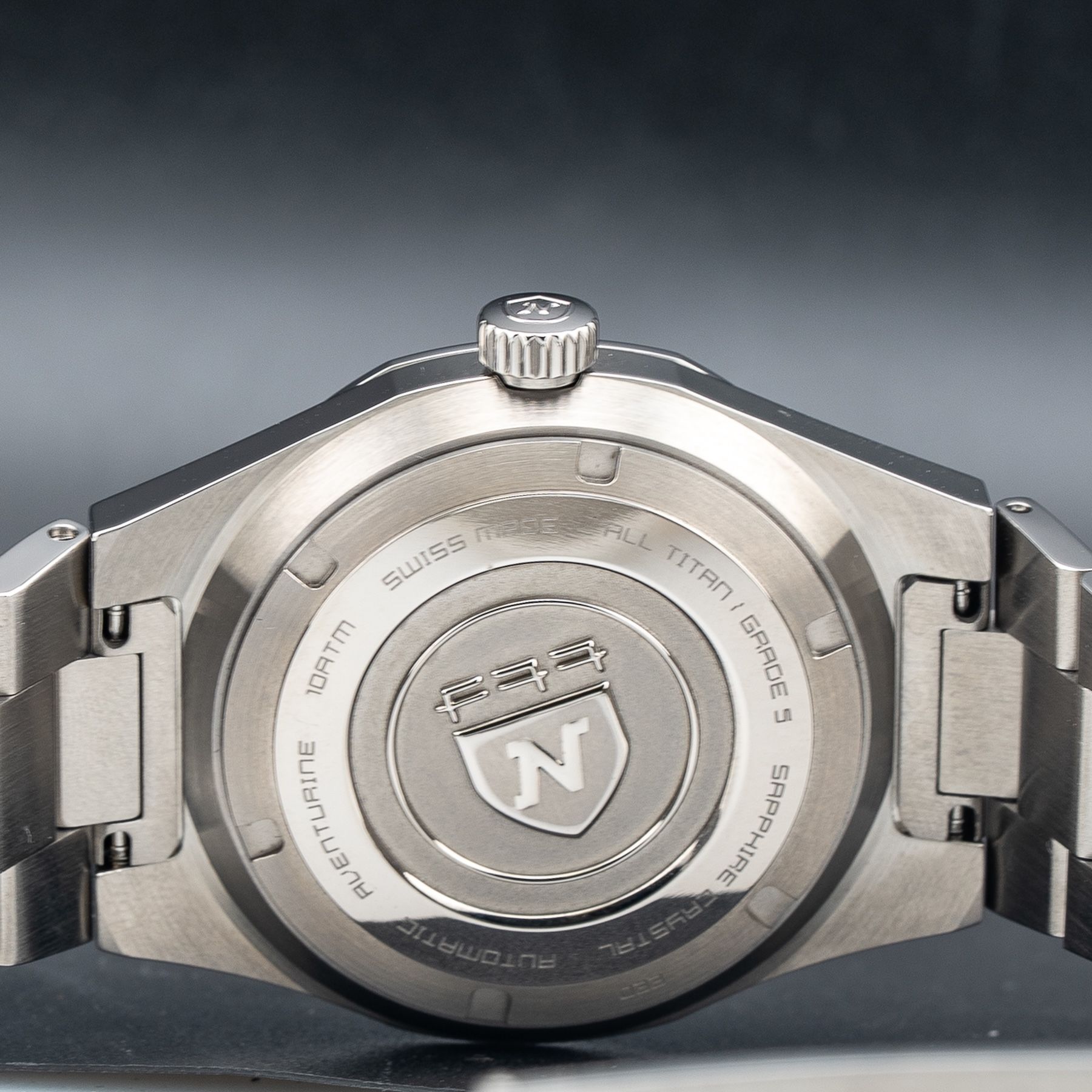 This Nivada Grenchen 68018A77 F77 Titanium Dark Blue Aventurine is in GREAT condition, it has boxes, papers and warranty card dated 6/30/25. This watch has been fully authenticated and certified by Exquisite Timepieces. Please note, the photos shown are of the actual watch you will receive.