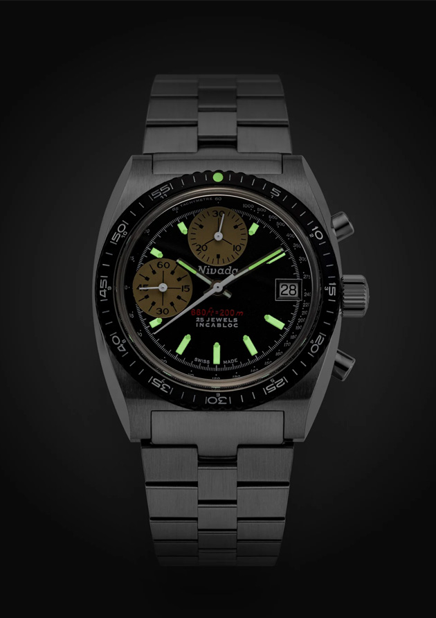 The new Chronosport stands out for its elegant design, advanced technical features, and most notably, its one-of-a-kind face. Indeed, its dial is both striking and original, deserving a closer, deeper look to fully appreciate its exceptional beauty: a textured matte black background; two embossed sub-dials (minutes and seconds) in taupe with a hint of khaki, positioned in an inspired move at 12 and 9 o'clock. The tachymeter scale surrounding the dial adds a sophisticated tool watch touch. The pointed baton indices, enhanced with white Super-LumiNova® and a white or yellow dot, underscore the design's refinement. Similarly, the hands, also filled with yellow or white, echo the elegance. The bold white logo and the Paul Newman Art Deco typography contribute to a fascinating sense of visual depth.