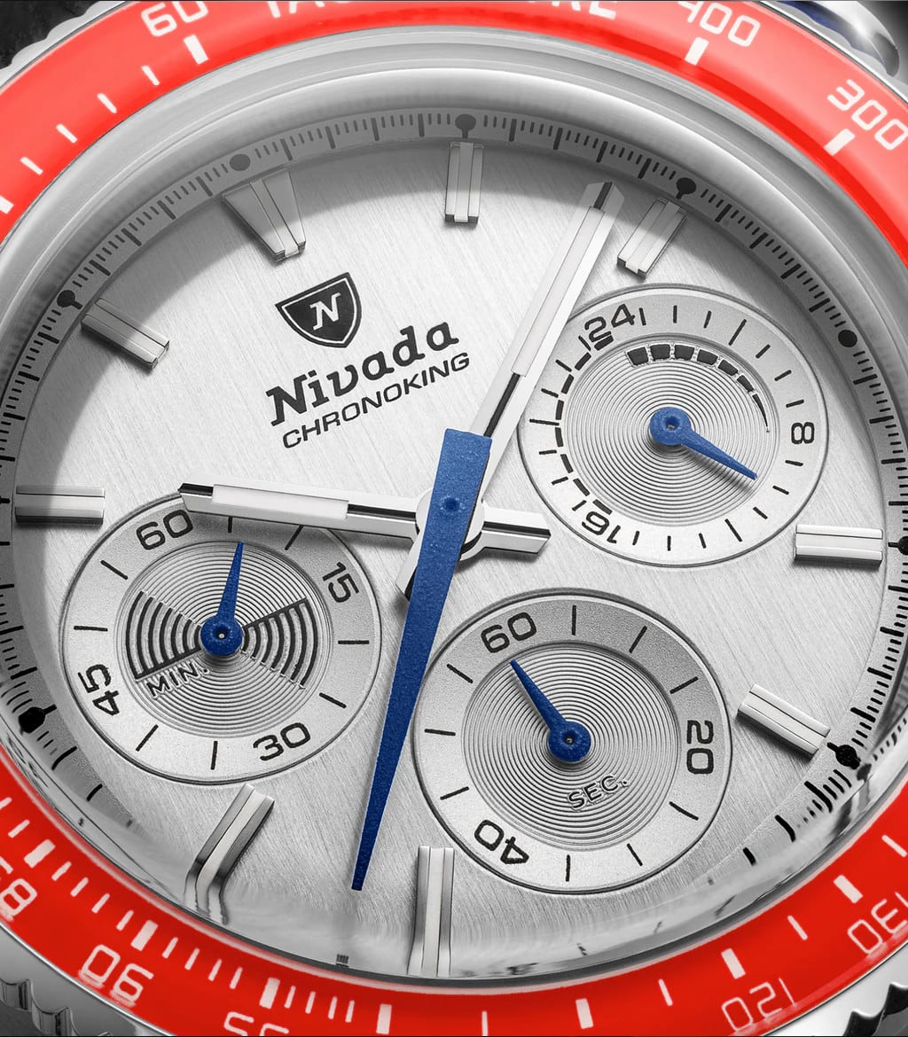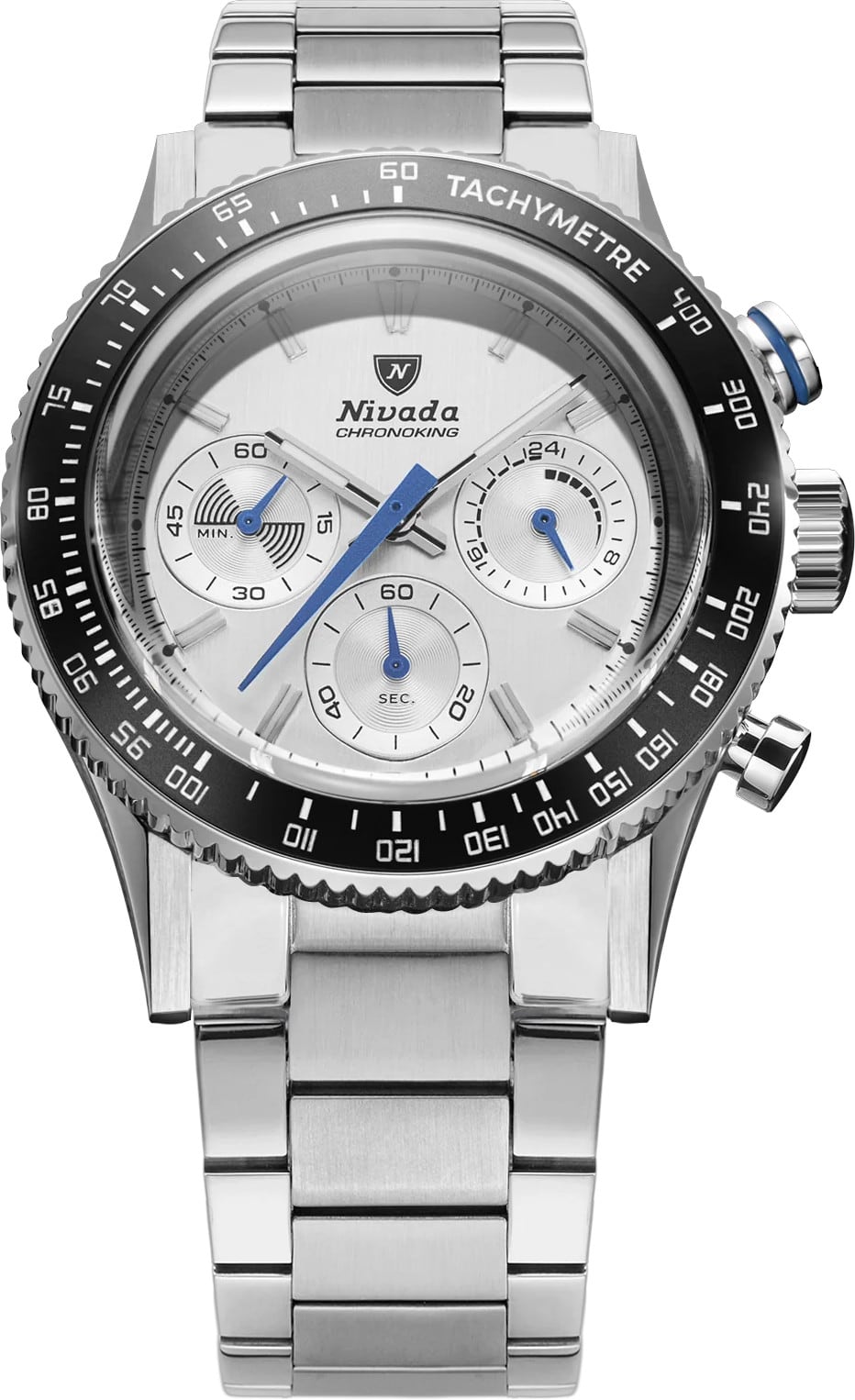 The Chronoking Racing collection celebrates the bold spirit of 1970s chronographs with a fresh, playful twist. Featuring vivid dial colors, interchangeable bezels, and a robust 38mm stainless steel case, each model blends vintage charm with modern versatility. At its heart beats the Swiss-assembled TMI VK63 Mecaquartz movement, combining quartz precision with the smooth sweep of a mechanical chronograph.