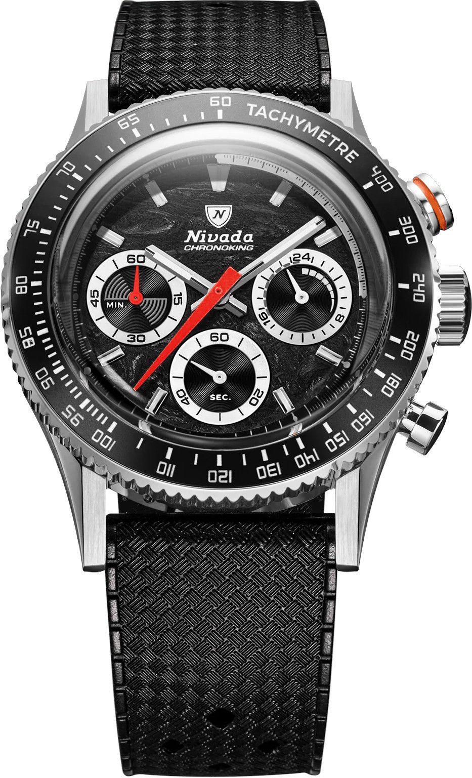 Nivada Grenchen 87048Q01 Chronoking Mecaquartz Racing Black On Rubber Tropic Strap