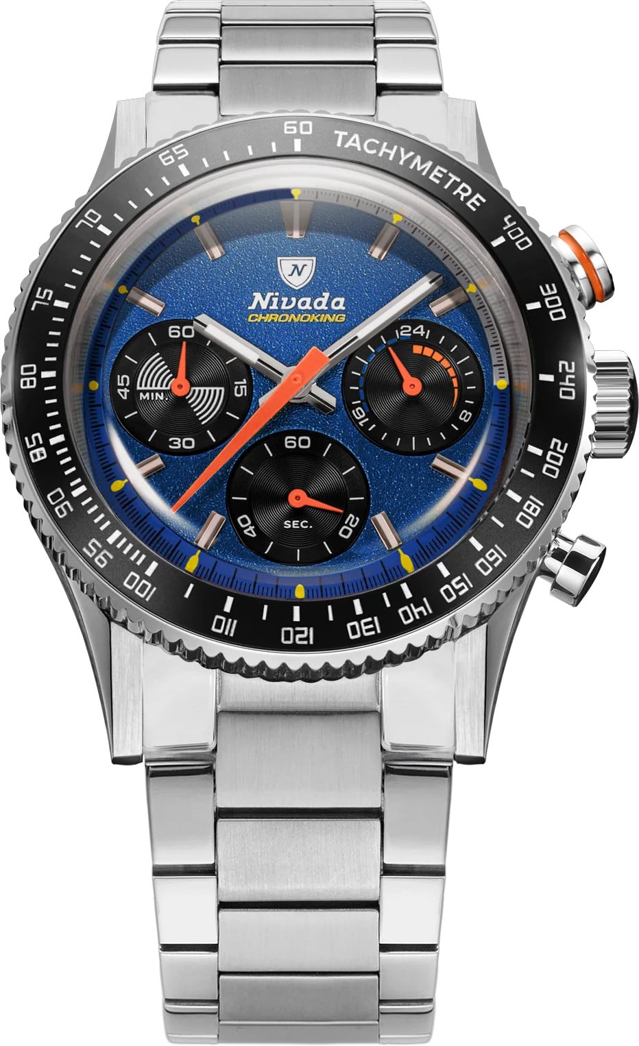 The Chronoking Racing collection celebrates the bold spirit of 1970s chronographs with a fresh, playful twist. Featuring vivid dial colors, interchangeable bezels, and a robust 38mm stainless steel case, each model blends vintage charm with modern versatility. At its heart beats the Swiss-assembled TMI VK63 Mecaquartz movement, combining quartz precision with the smooth sweep of a mechanical chronograph.