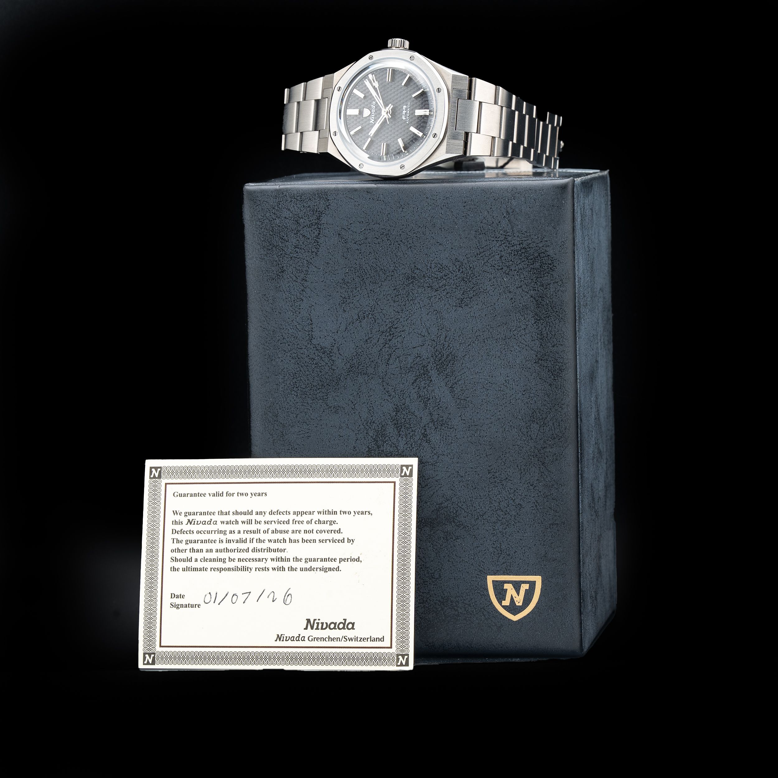 This Nivada Grenchen 68006A77 F77 Anthracite Titanium On Bracelet is in GREAT condition. This watch includes its Original Box, Original Papers and Warranty Card Dated 01/07/2026. This watch has been fully authenticated and certified by Exquisite Timepieces. Please note, the photos shown are of the actual watch you will receive.