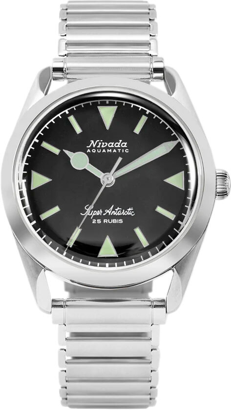 The Super Antarctic is a faithful reedition of the vintage one with a matte black dial and three Swiss Super luminova options, cream, white and green. Diameter is contained to 38 mm and lugs to lugs to 45 mm with a great thickness of 11,1 mm. You will notice the legendary gold medallion on the caseback