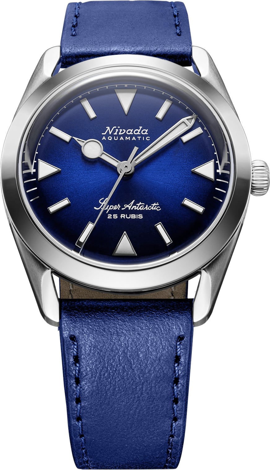 Two references are available: No-Date for pure symmetry, or Date for daily utility both housed in the Super Antarctic’s compact, wearable case format with modern upgrades like double-domed sapphire and a screw-down crown rated to 10 ATM / 100 m.