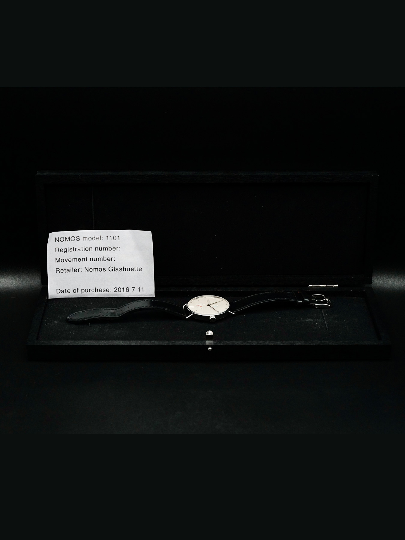 This NOMOS Glashütte 1101 Metro is in GREAT condition. This watch includes its original box only. No instructions or warranty card. This watch has been fully authenticated and certified by Exquisite Timepieces.