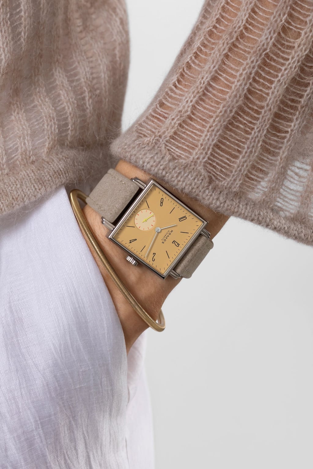 Drawn from pigments once treasured by artisans and ancient Egyptian royalty, Tetra Ochra glows with golden light. With its strikingly square case, this watch balances contemporary aesthetics with artisanal tradition. It also represents a philosophy—that true brilliance is found in the harmony of craft and character. The hand-wound caliber DUW 4001 at work within illustrates this with meticulous precision.