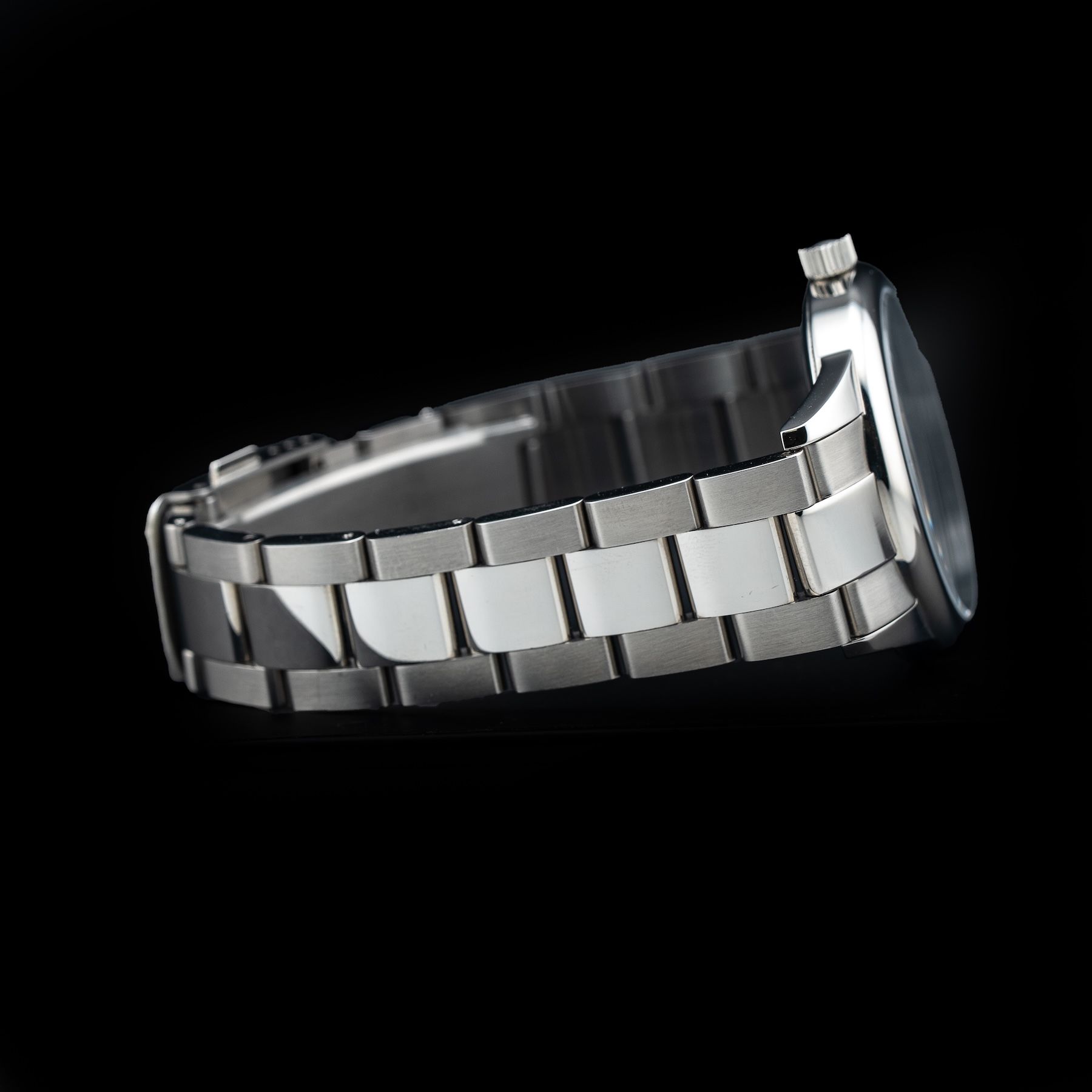 This watch features a 37mm stainless steel case on stainless steel bracelet. This watch also sports a petrol dial. Powered by a mechanical automatic movement. Water resistance up to 200 meters.