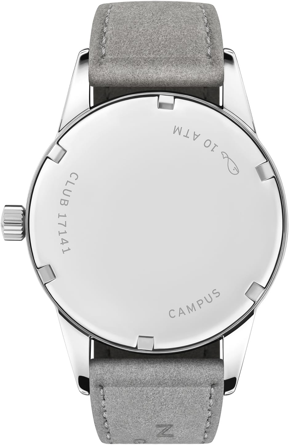 Club Campus is water-resistant to 10 atm and therefore also suitable for swimming. Apart from this information, only the model name and the case number are engraved on the edge of the stainless steel base as standard. The entire inner surface is reserved for engraving.