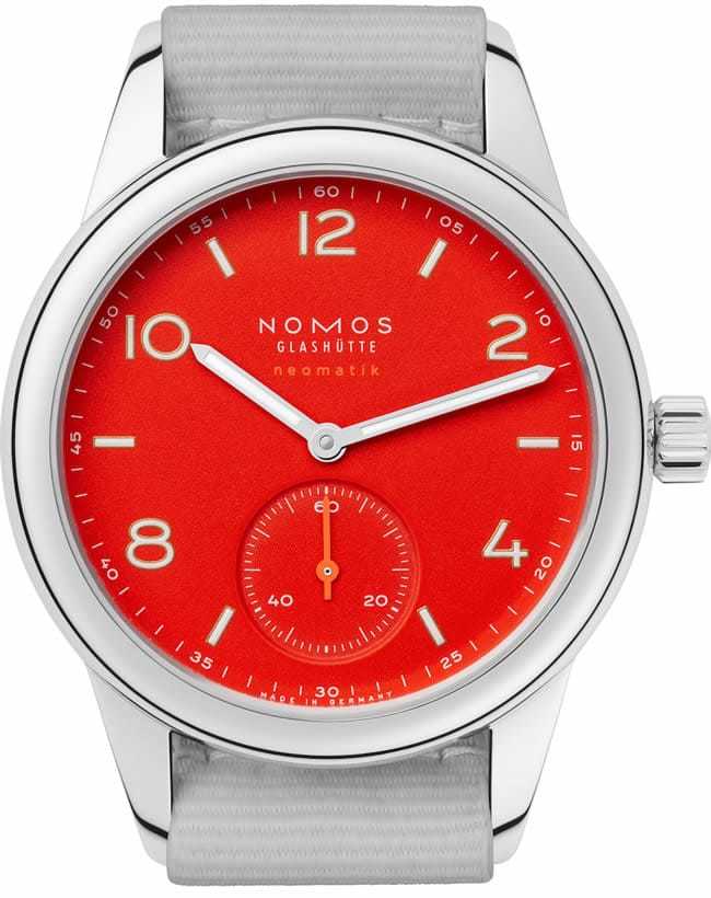 neomatik is going swimming in style: with Club. As of now the new ultra-thin NOMOS caliber DUW 3001 is at work within this quintessential NOMOS timepiece—enabling Club to tick not only with exceptional precision, but in the classically elegant size of 37 millimeters. This timepiece has more to offer: Club neomatik is water resistant to 20 atm, so 200 meters, its case (in typical Club fashion) is as robust as can be, and thanks to superluminova, this watch also tells the time in the dark. A timepiece for unique wrists, and therefore: a unique red. We think it has earned the extra attention.