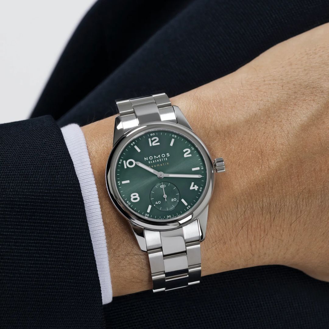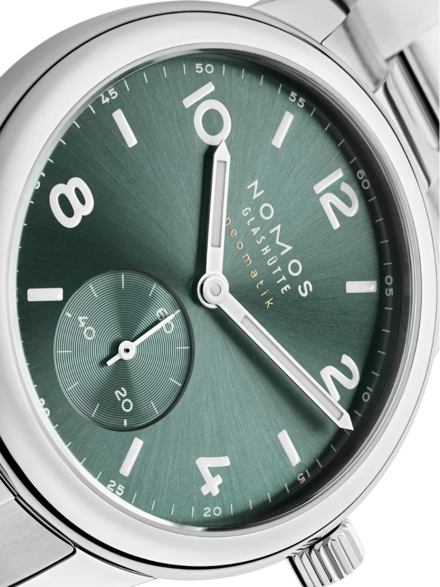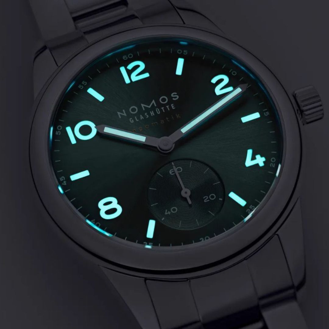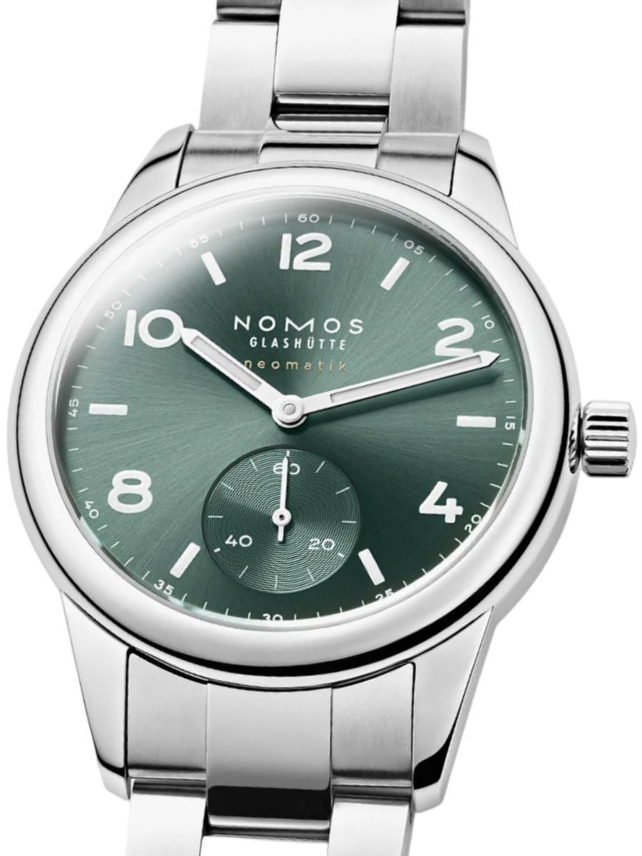 Club Sport neomatik in petrol green has a case diameter of 37 millimeters—the automatic watch with elaborate sunburst finish dazzles on any wrist. It accompanies you through busy weekdays with its motivating sportiness. This high-performance model is powered by DUW 3001, the innovative caliber from NOMOS Glashütte. The movement developed and manufactured by NOMOS is just 3.2 millimeters in height and equipped with the NOMOS swing system for optimum accuracy. Those who want to lose no time between working at the desk and jumping into the pool are in good hands with this watch as Club Sport neomatik petrol is water resistant to 20 atm and stays put on your wrist while swimming.