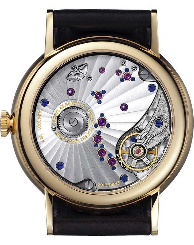 NOMOS caliber DUW 1001 - The top caliber from Deutsche Uhrenwerke NOMOS Glashütte: twin mainspring barrels ensure an 84 hour power reserve