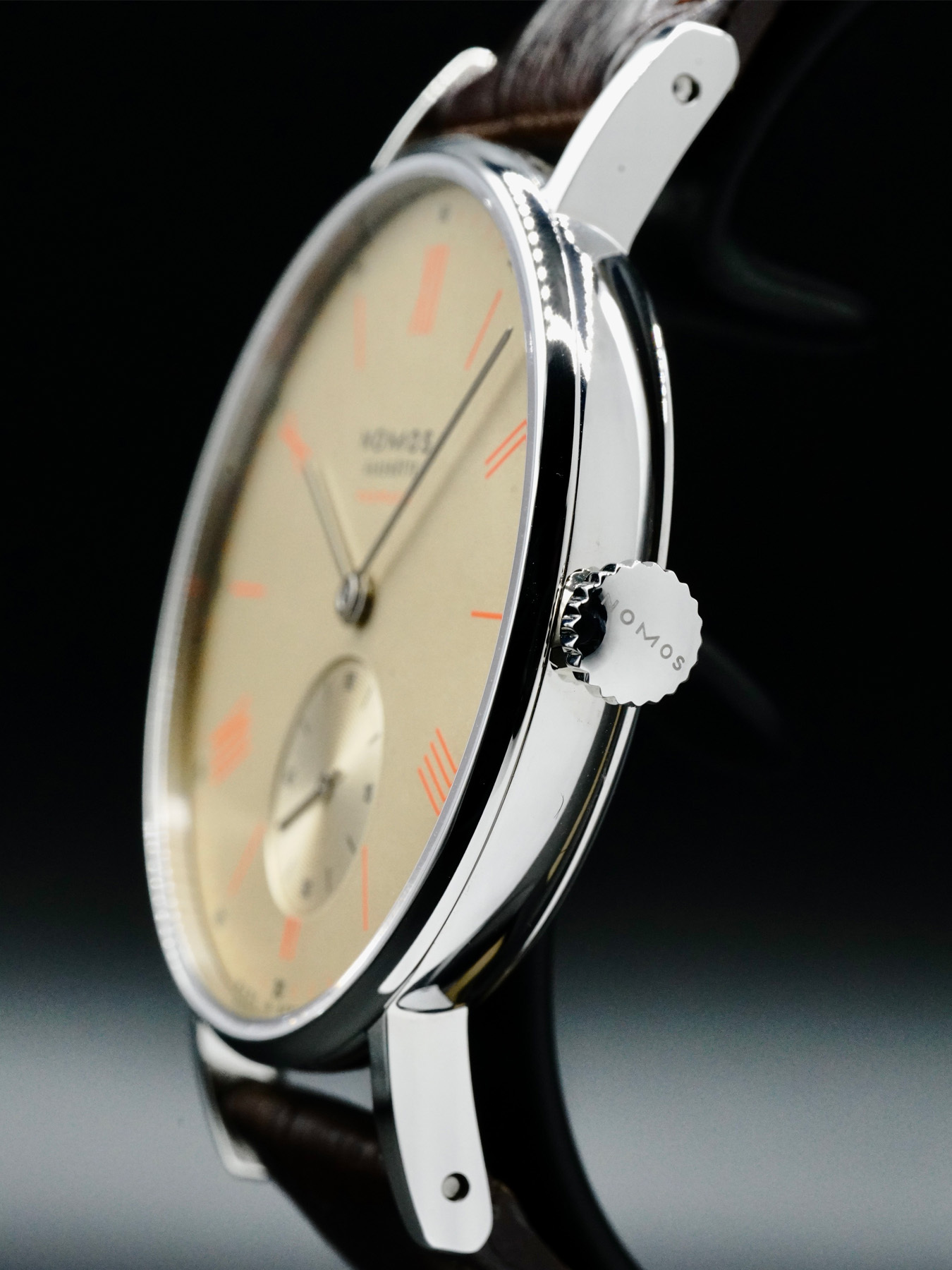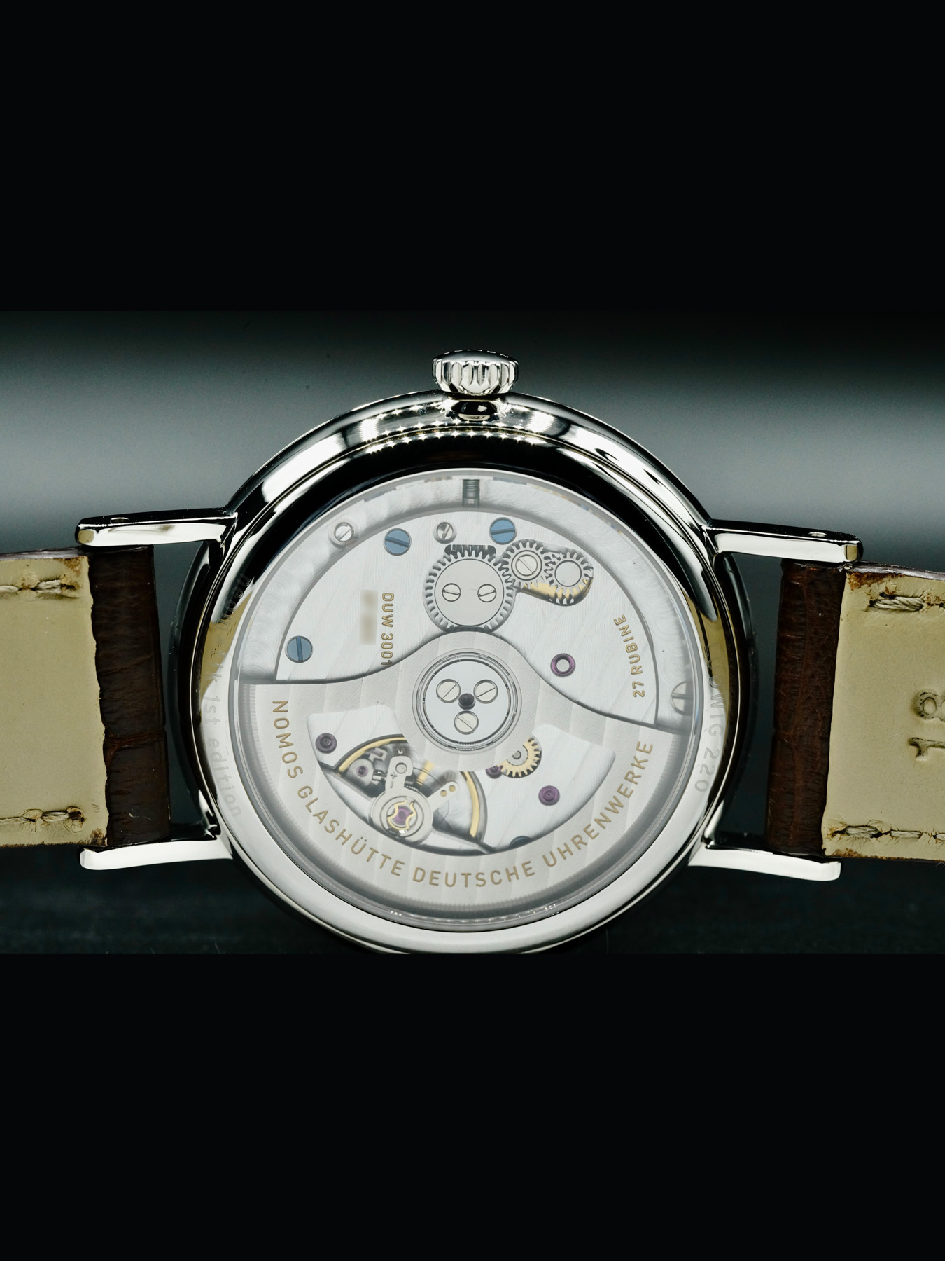 Automatic movement powered by NOMOS Glashütte Caliber DUW 3001 and is water resistant up to 30 meters.