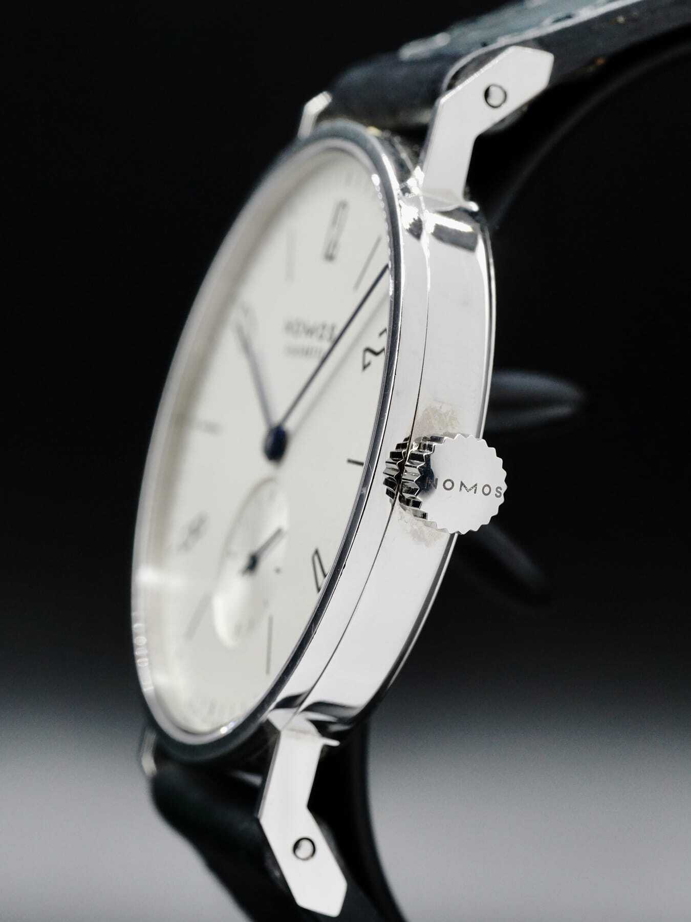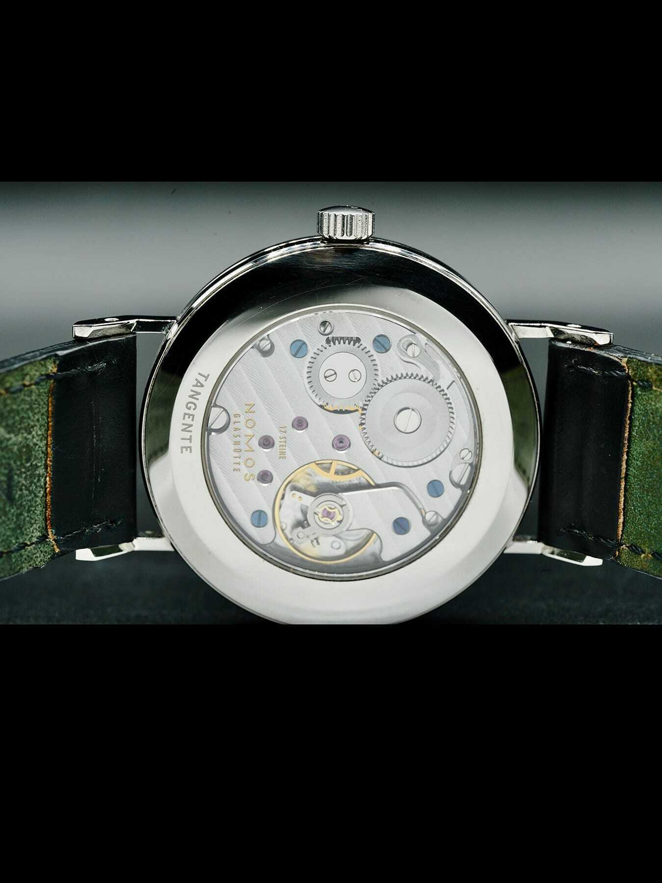 Powered by a Mechanical Manual Movement, Calibre NOMOS Alpha. Water resistance up to 30 meters.