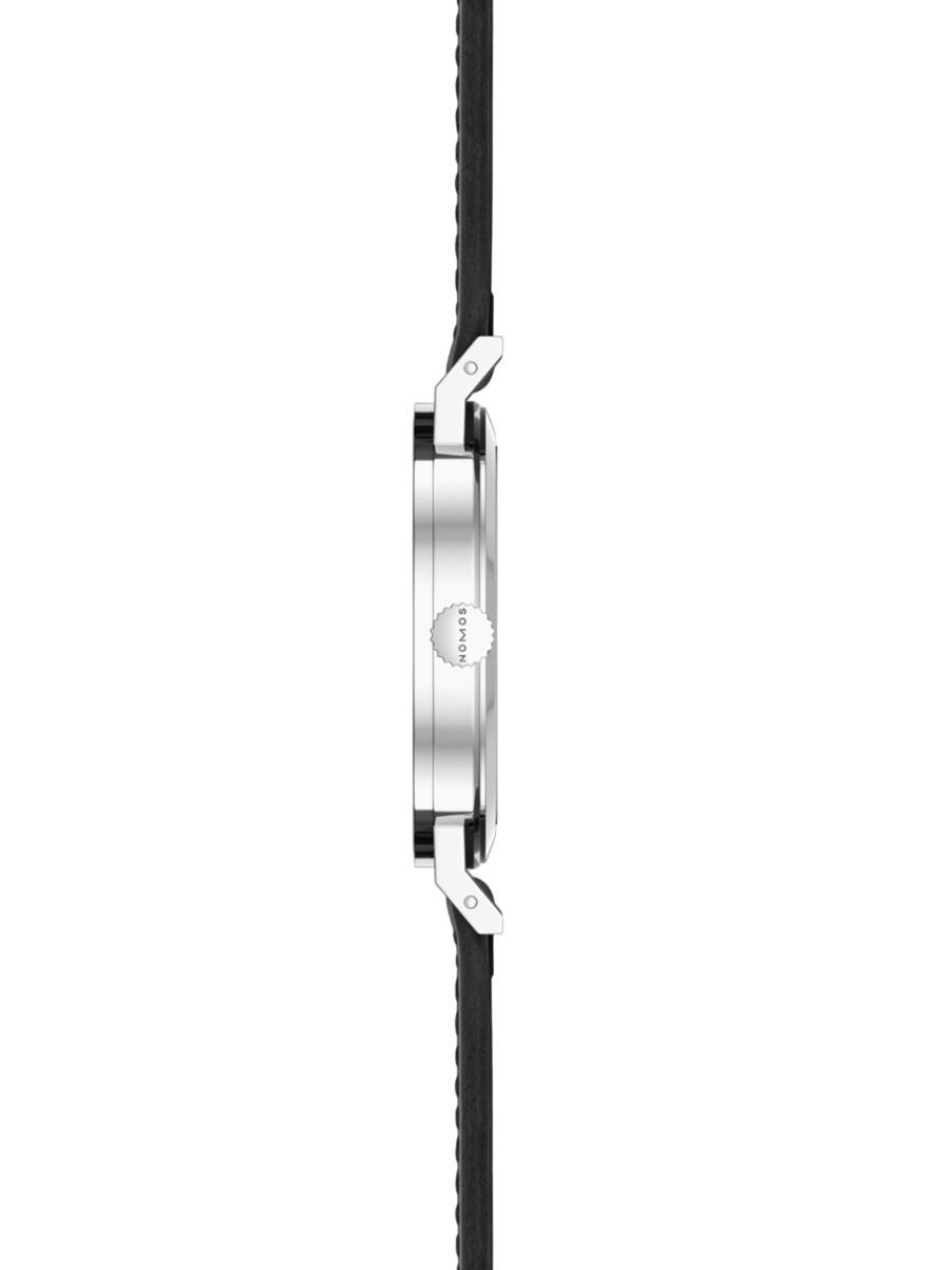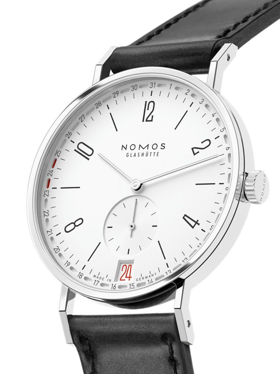 Tangente with its straight, slim case, angled lugs, thread hands that are typical for NOMOS, and narrow serif font has long been a beloved watch model. As the Tangente 2date, it is now a dating pro.