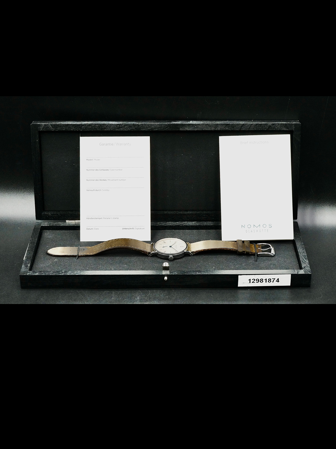 This NOMOS Glashütte Tangente 33 is in GREAT condition. This watch includes its original box, instruction manual, and warranty card. No date on warranty card.