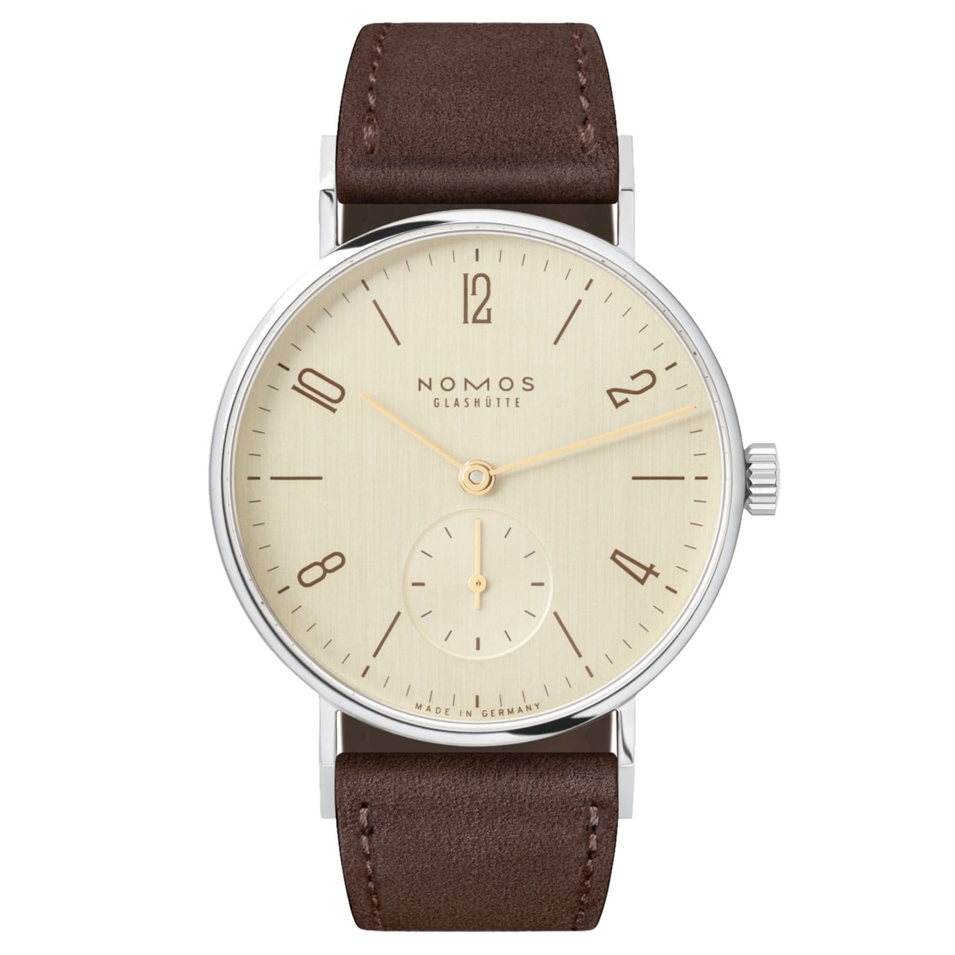 Unmistakably Tangente: five numerals with typography reminiscent of the Bauhaus era. And typically NOMOS Glashütte: the sub-seconds dial, which allows the dial to appear entirely clean.