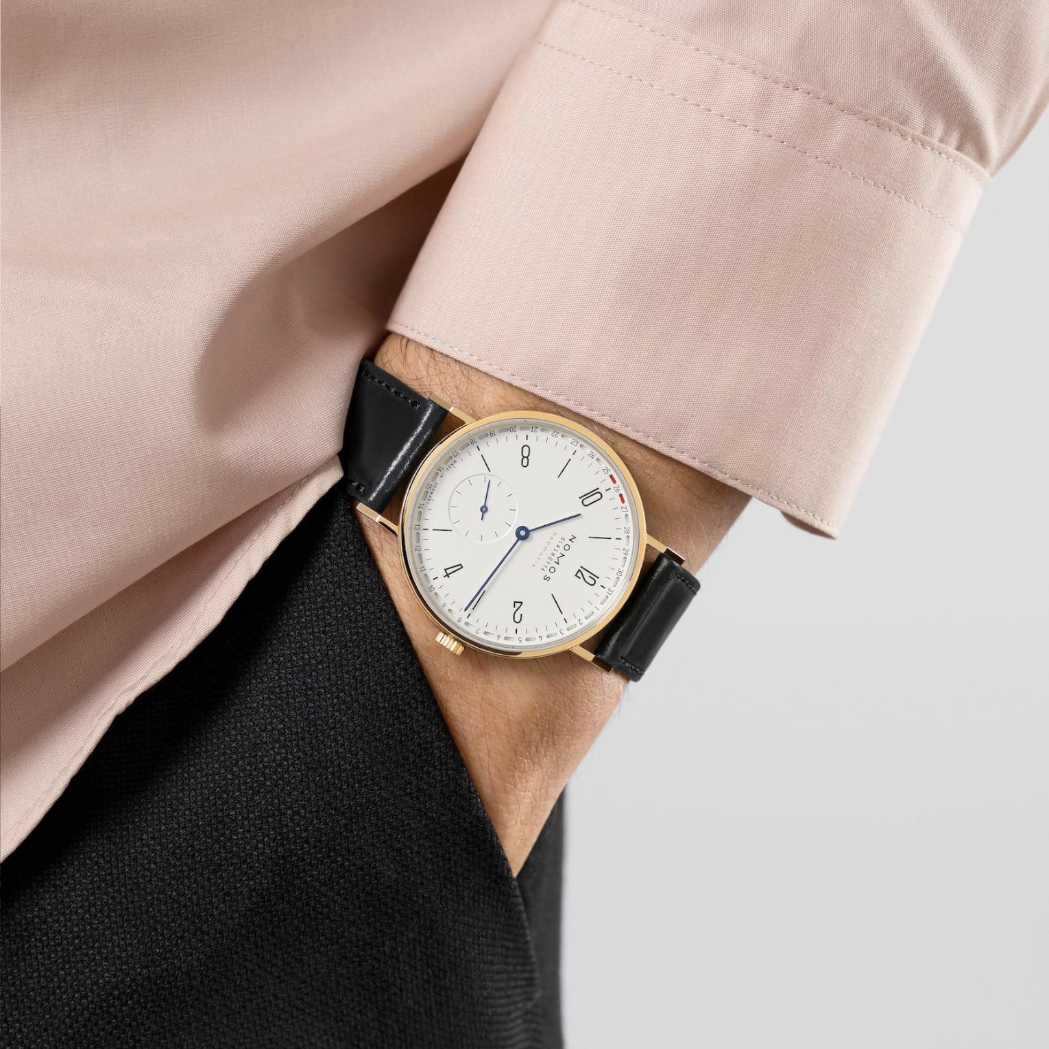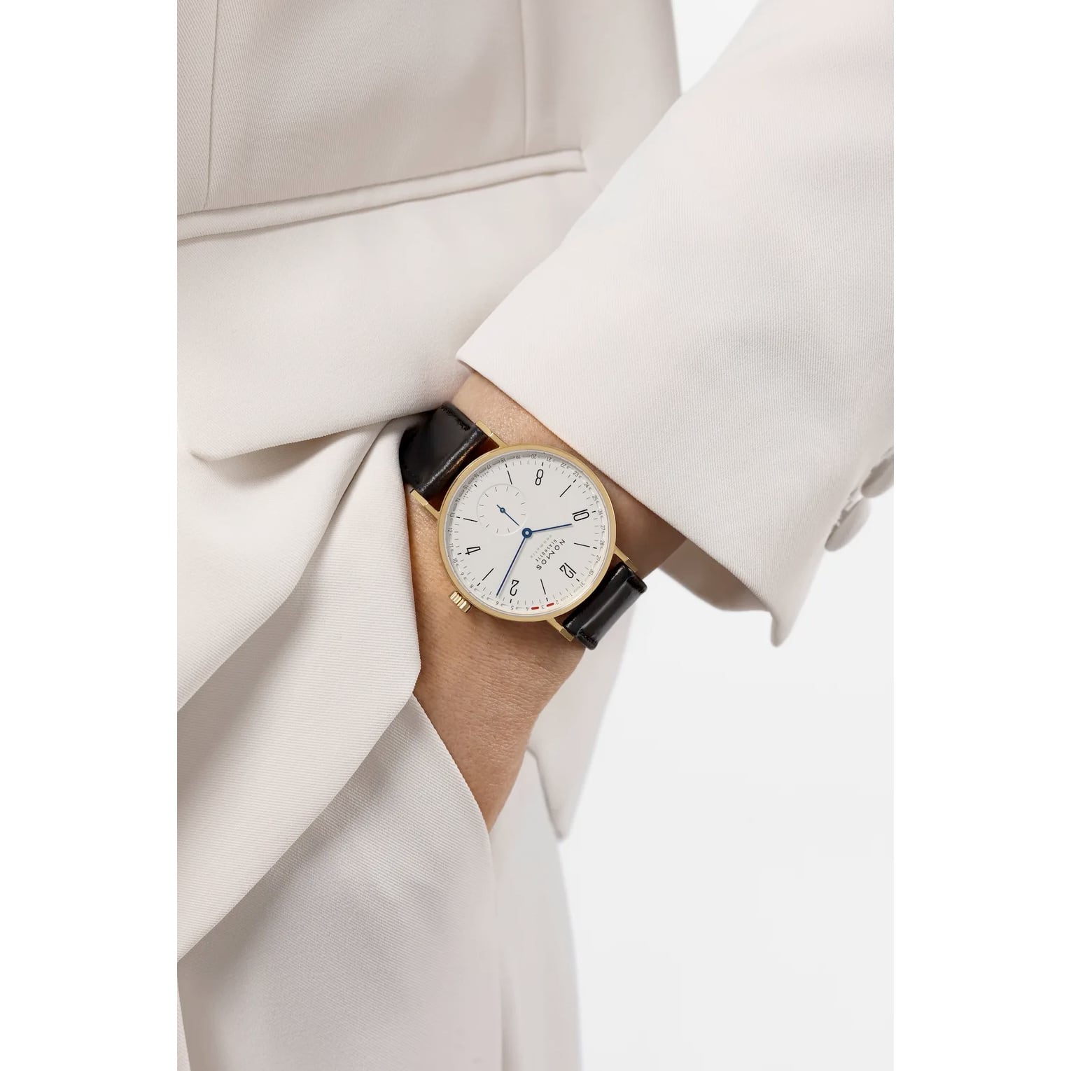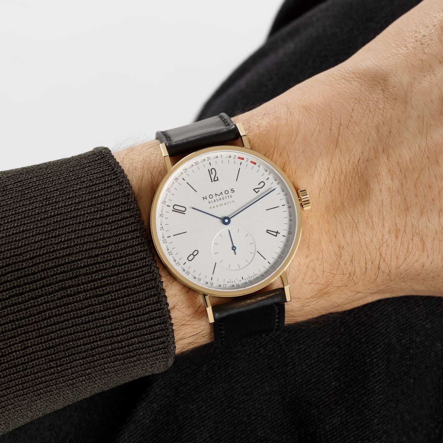 NOMOS Glashütte is also known for modern dress watches, crafted from gold; exquisite timepieces featuring clean designs and high-performance mechanics, made in-house in Glashütte, Germany. Tangente neomatik Update is the iconic automatic watch in the collection. This 38.5-millimeter version in 18-karat gold combines the model’s award-winning functionality with the emotional appeal and warmth of the precious material. This is Tangente from a completely different side.