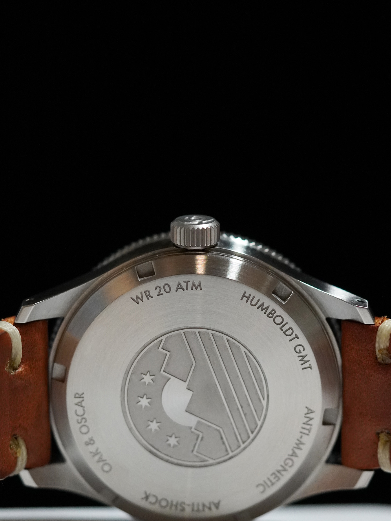 This Oak And Oscar Humboldt GMT is in GREAT condition. This watch includes its Original Box, Original Papers and Warranty Card. This watch has been fully authenticated and certified by Exquisite Timepieces.