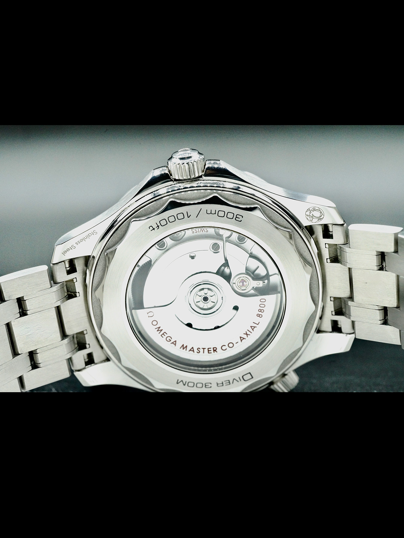 Automatic movement powered by Omega Calibre 8800 with a power reserve of approximately 55 hours. Water resistance up to 300 meters.