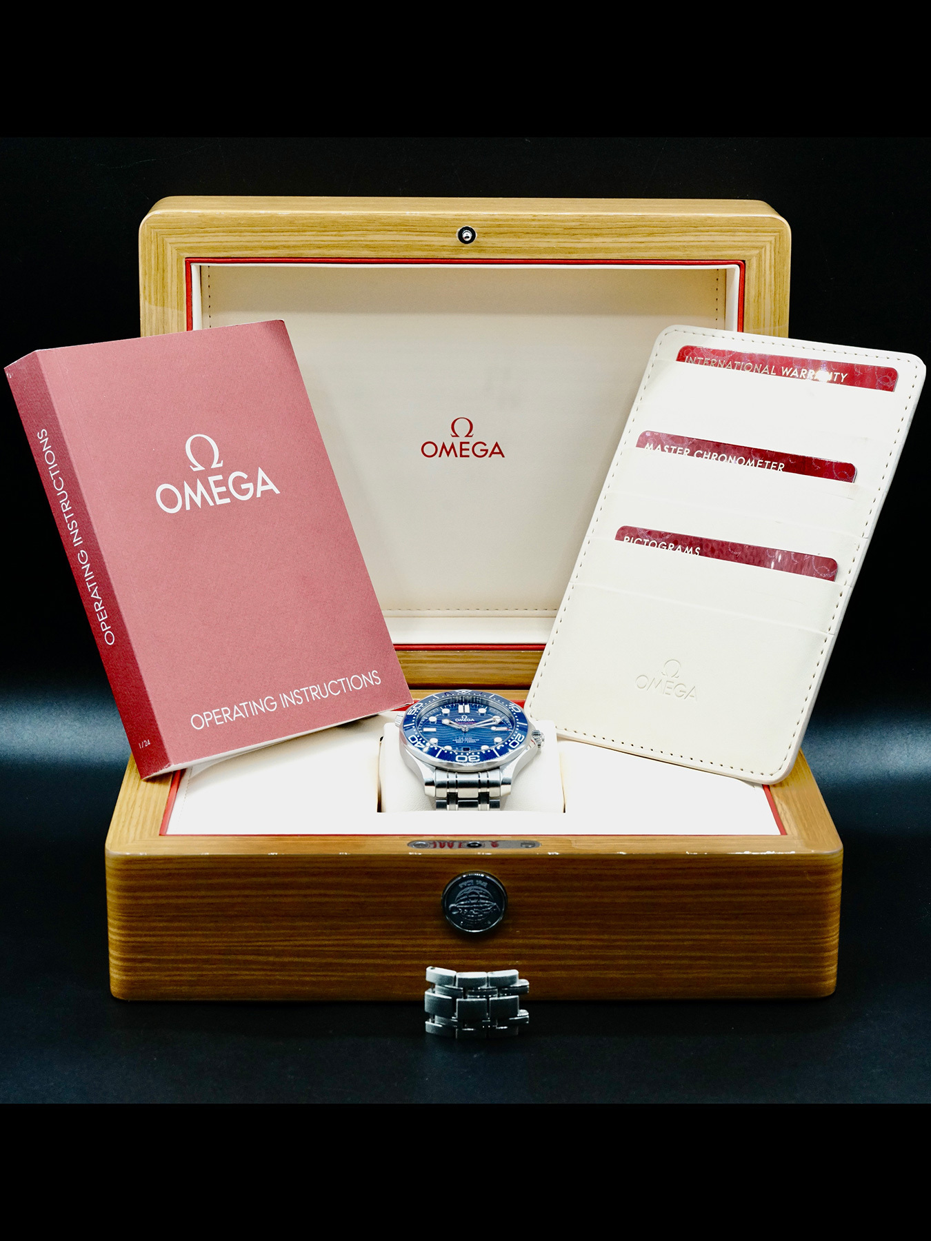 This Omega Seamaster Diver 300M 210.30.42.20.03.001 is in EXCELLENT condition. This watch includes its original box, instruction manual, and warranty card dated for March 2023. Extra stainless steel bracelet links. This watch has been fully authenticated and certified by Exquisite Timepieces.