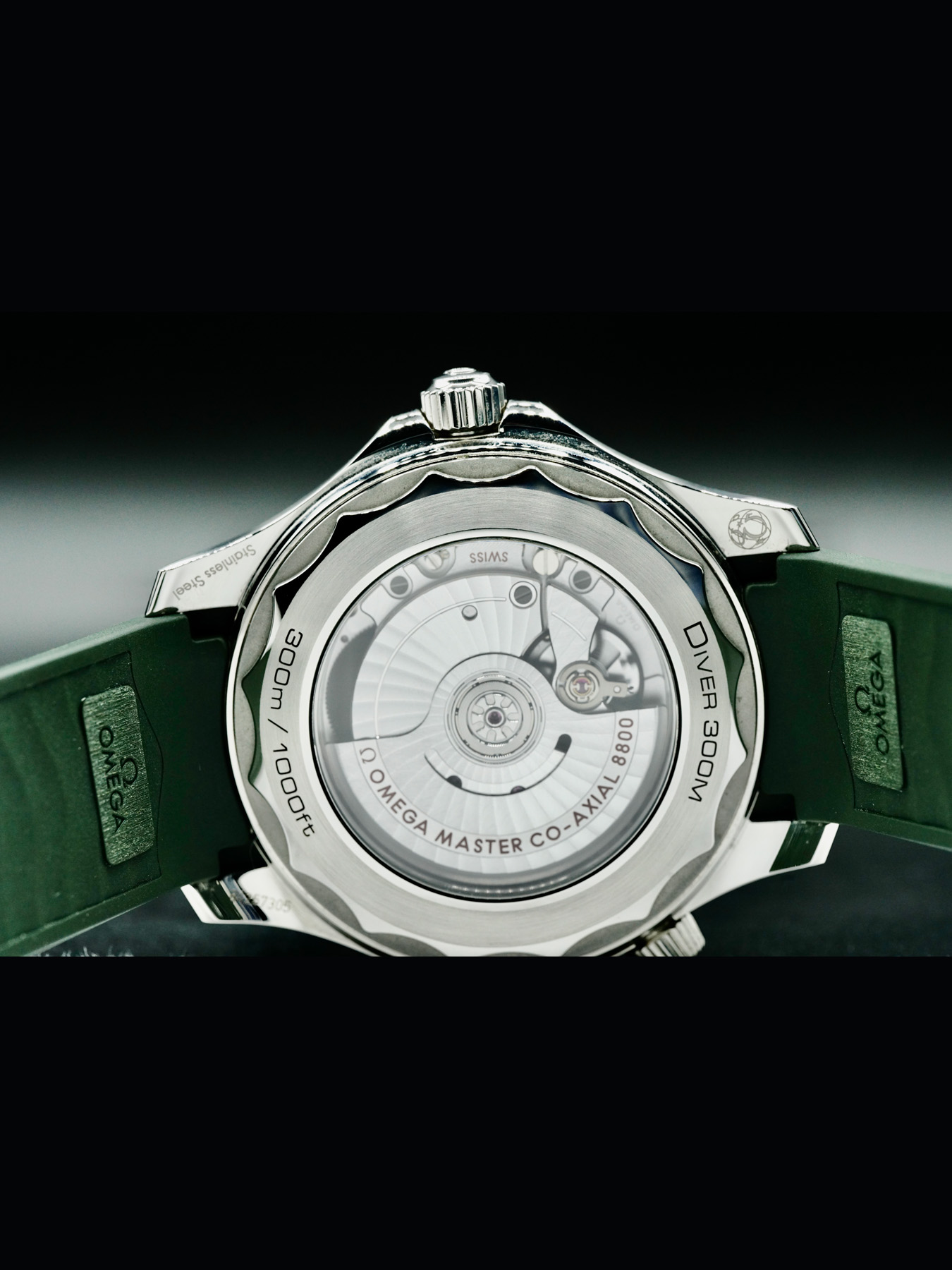 This watch features a 42mm steel case on a green rubber strap. This watch also sports a green dial. Powered by a Mechanical Automatic Movement. Water resistance up to 300 meters