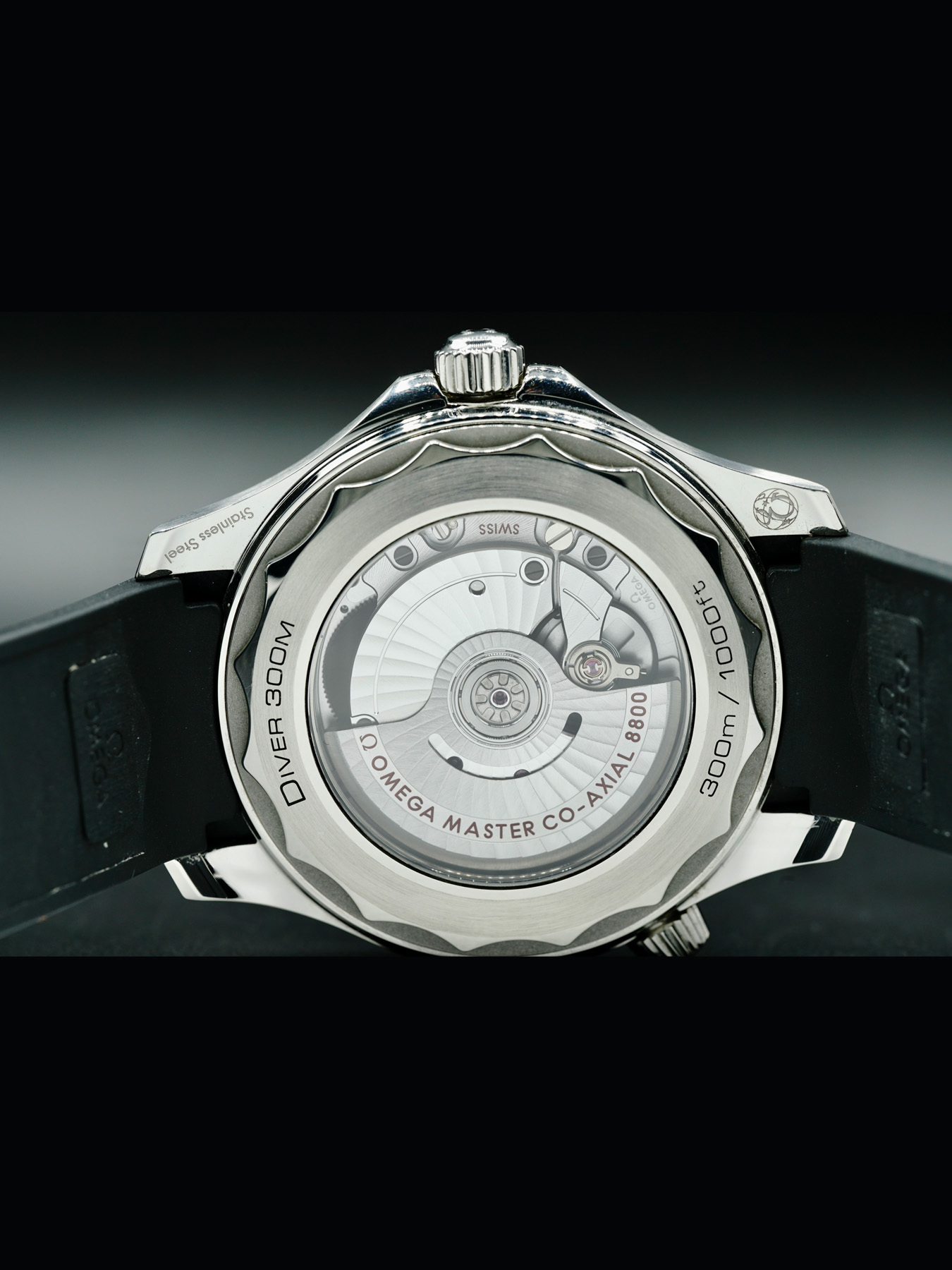 This watch features a 42 mm stainless steel case on rubber strap. This watch also sports a black dial. Powered by an automatic movement. Water resistance up to 300 meters.