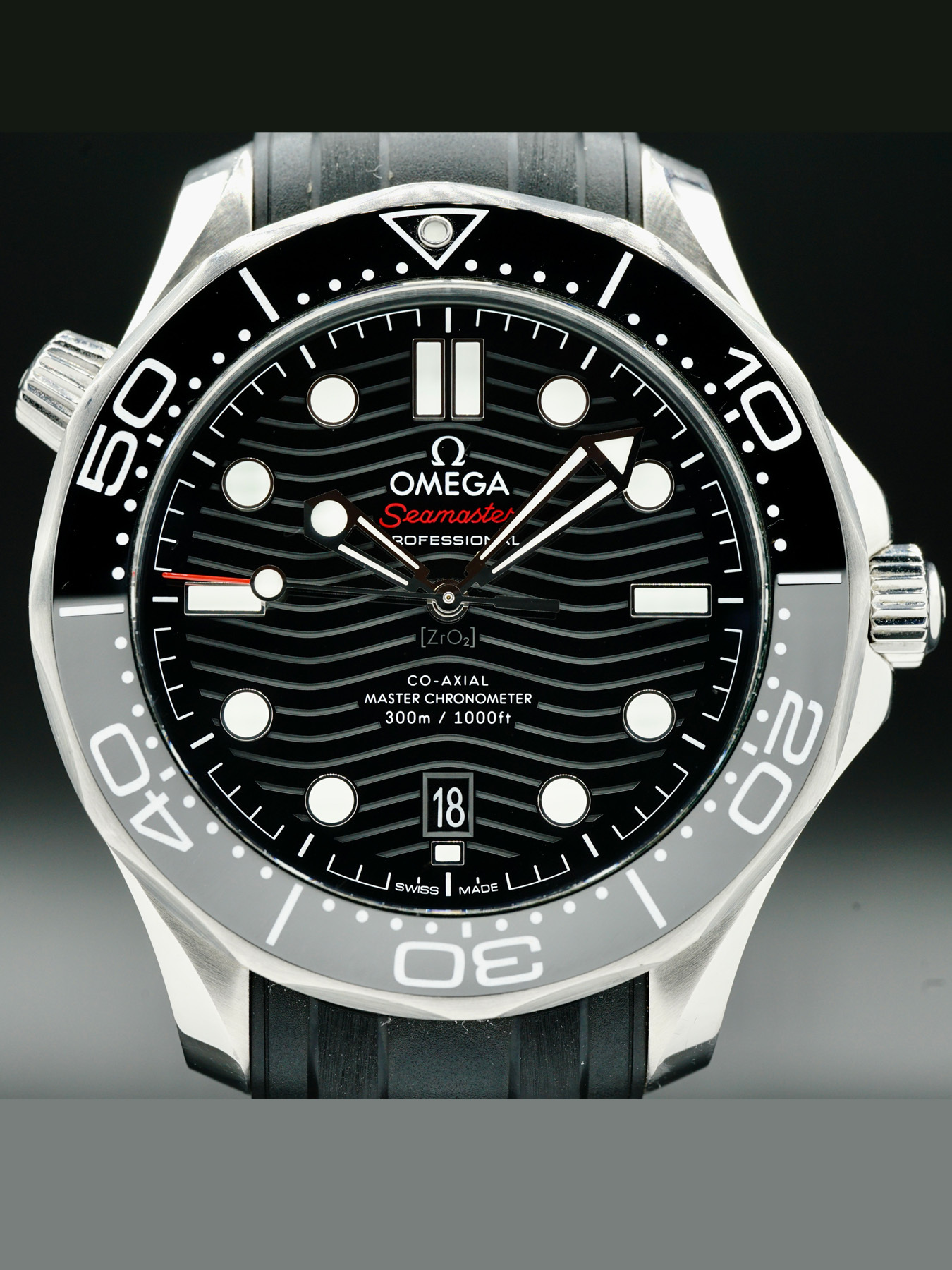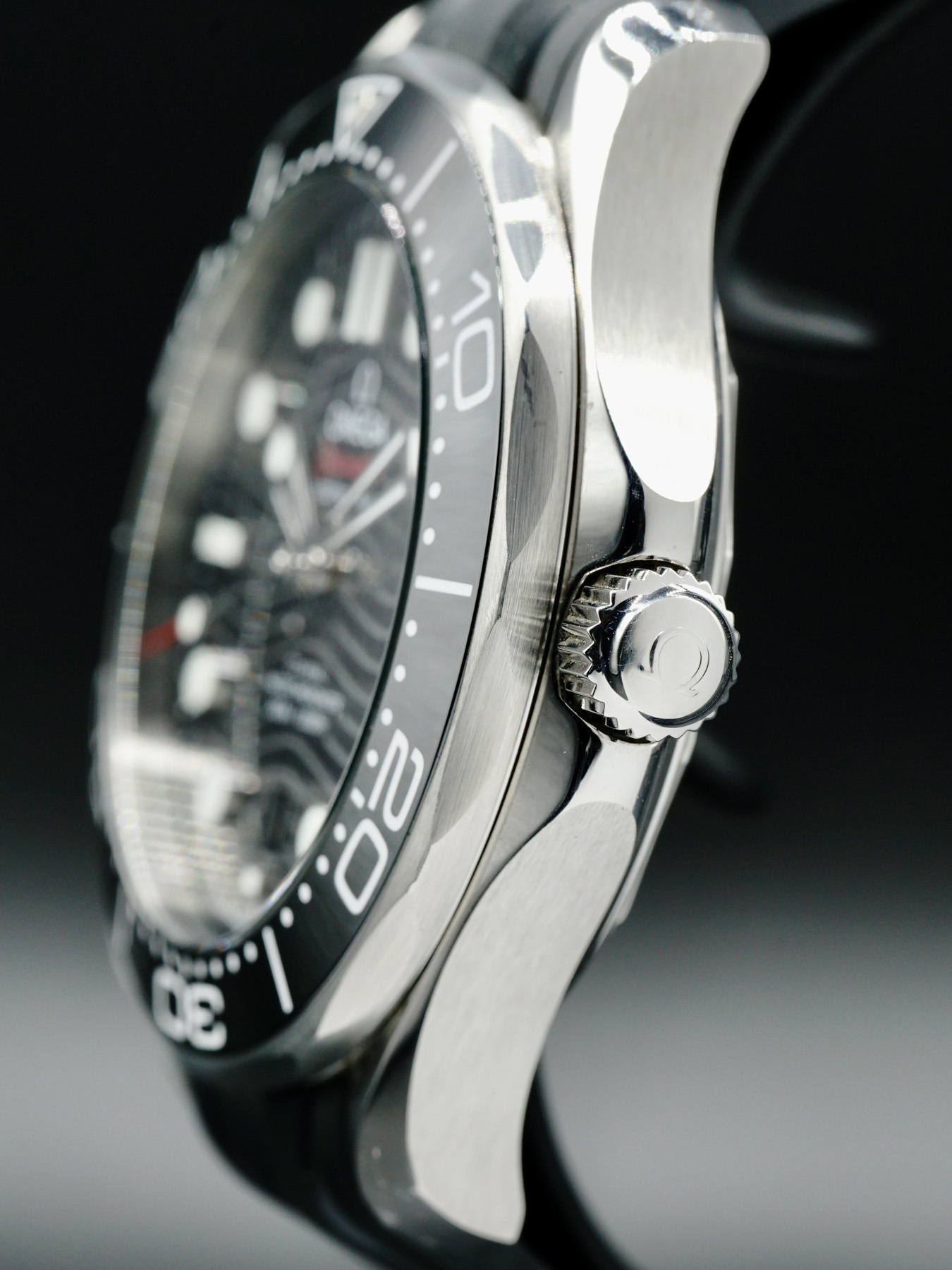 This Omega 210.32.42.20.01.001 Seamaster Diver 300M Co-Axial Master Chronometer Black Dial on Rubber Strap is in EXCELLENT condition. This watch includes original box, instructions blooklet, warranty card not dated. This watch has been fully authenticated and certified by Exquisite Timepieces.