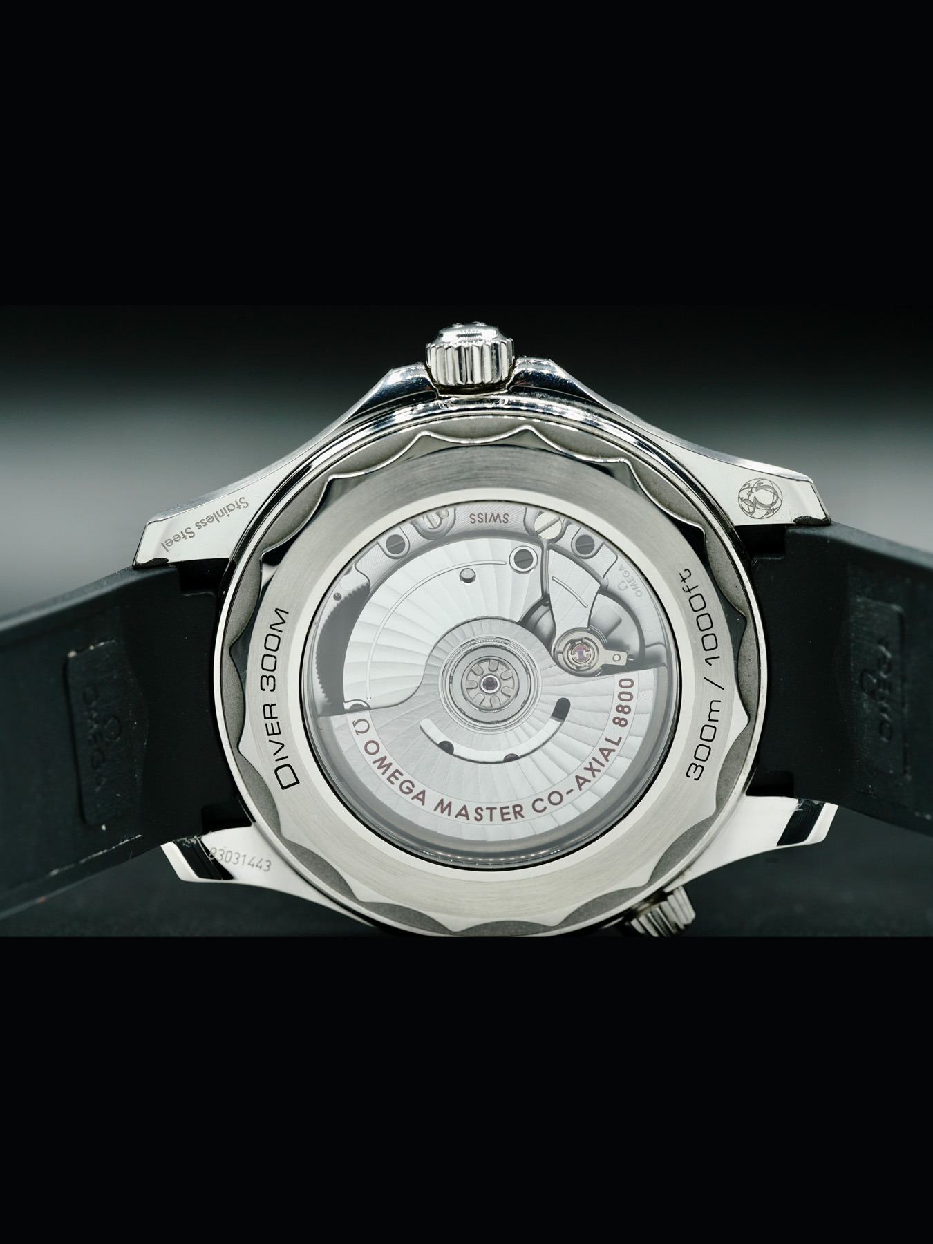 Automatic movement powered by Omega Calibre 8800 with a power reserve of approximately 55 hours. Water resistance up to 300 meters.