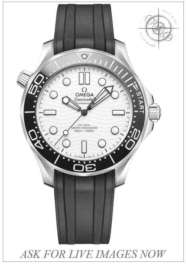 This watch features a 42mm stainless steel case on rubbber strap. This watch also sports a white dial. Powered by a mechanic automatic movement. Water resistance up to 300 meters.