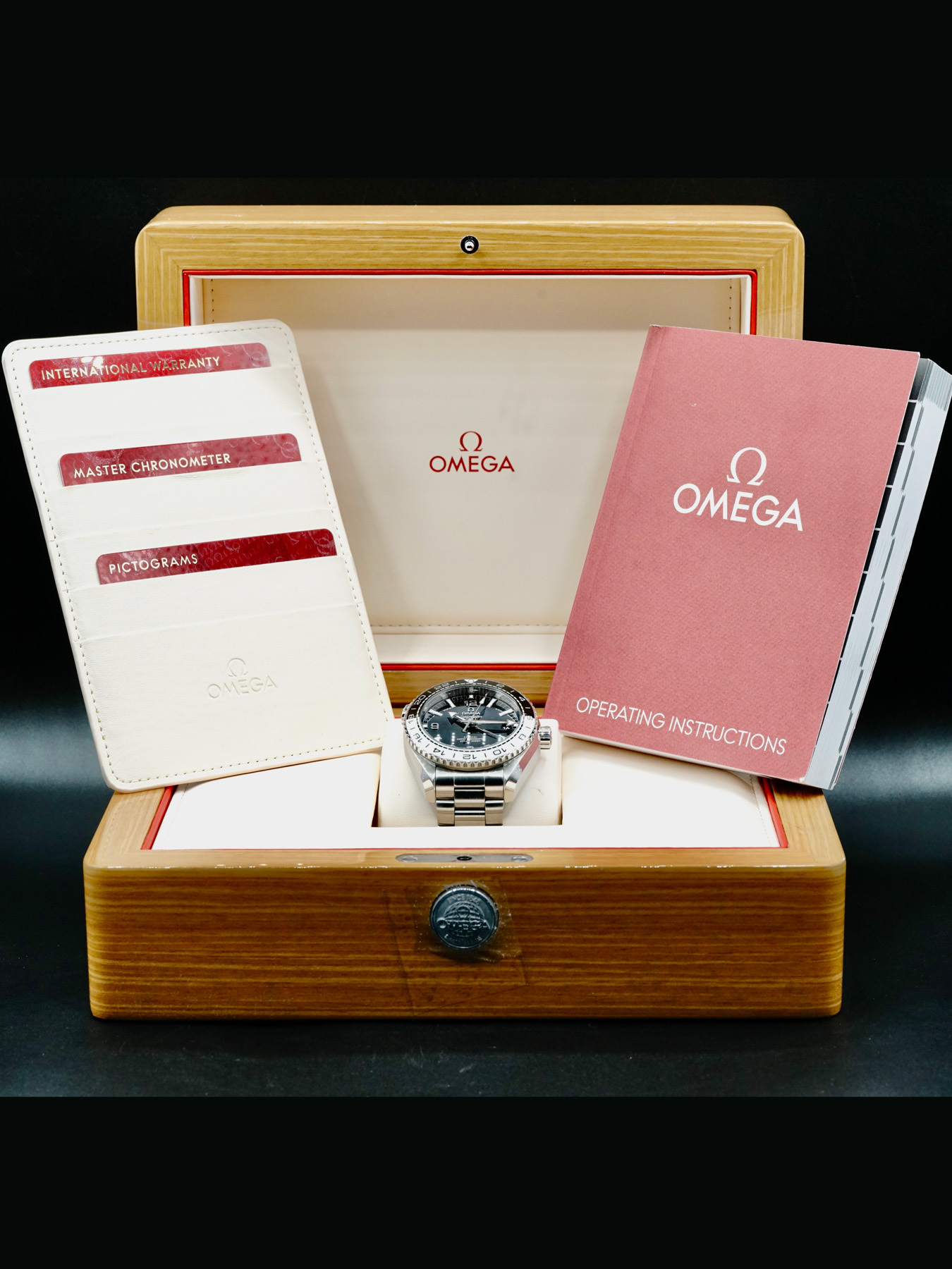 This Omega 215.30.44.22.01.001 Planet Ocean 600M Co-Axial Master Chronometer GMT on Bracelet is in GREAT condition.This watch includes its original box, operating instructions, master chronometer certificate, and international warranty card. No date on warranty card.