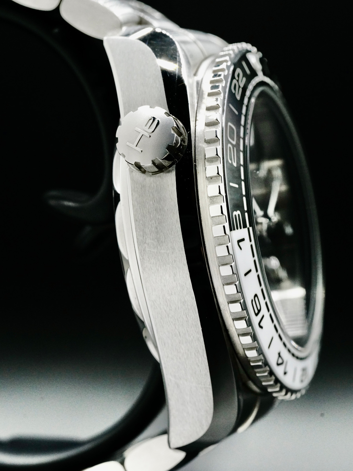 This watch features a 43.5mm steel case with black dial. Powered by a Mechanical Automatic Movement. Water resistance up to 600 meters.