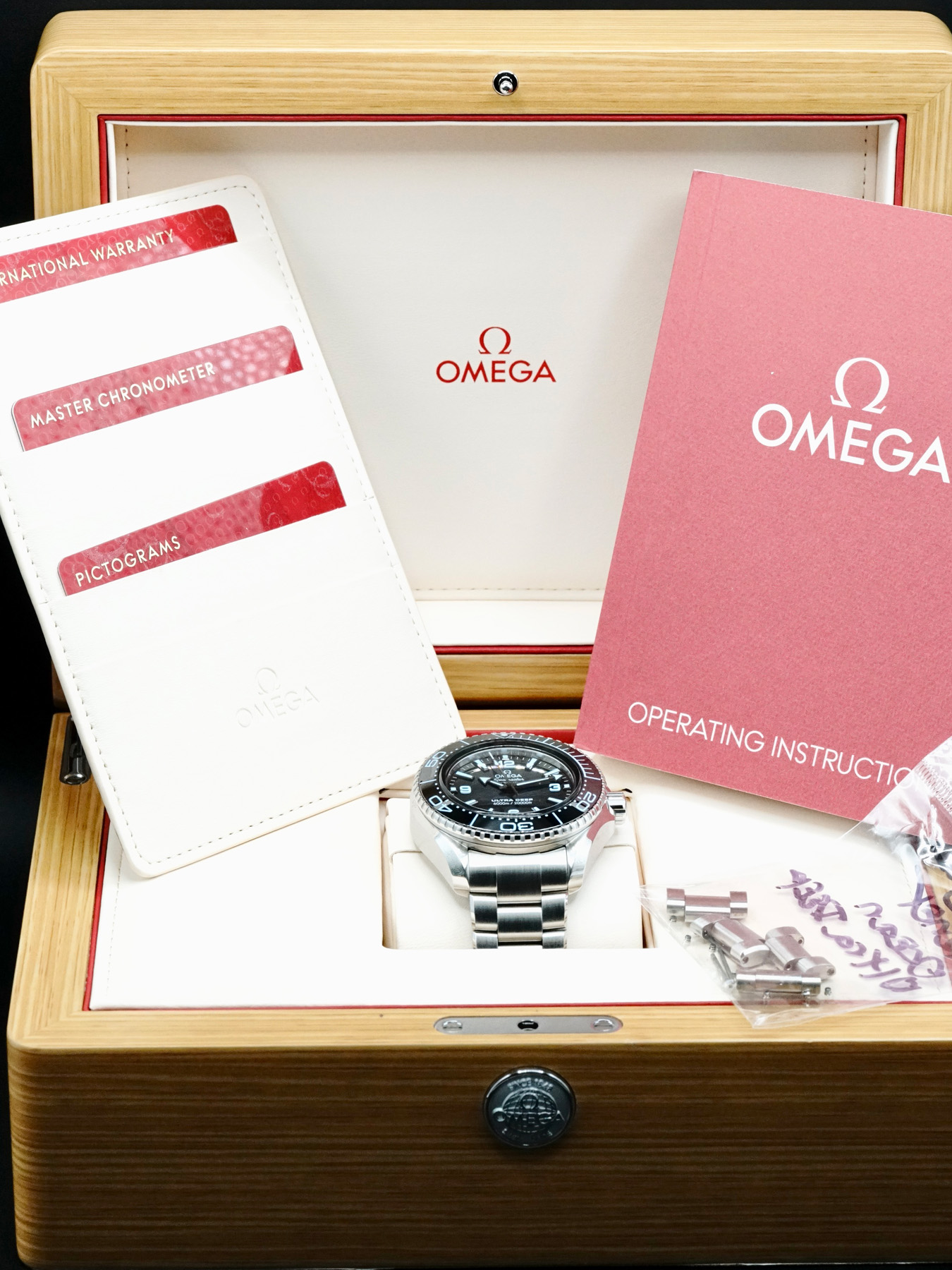 This Omega Seamaster Ultra Deep 6000M Summer Blue 215.30.46.21.03.002 is in EXCELLENT condition. This watch includes its original box, papers, and warranty card. Extra stainless steel bracelet links. This watch has been fully authenticated and certified by Exquisite Timepieces.
