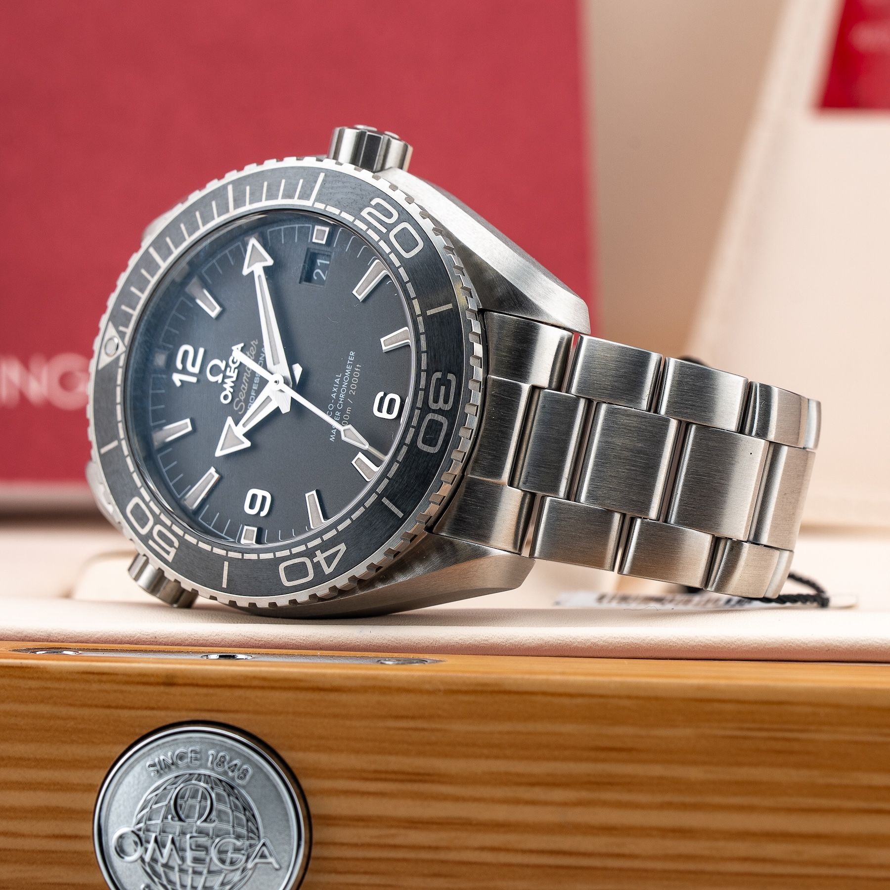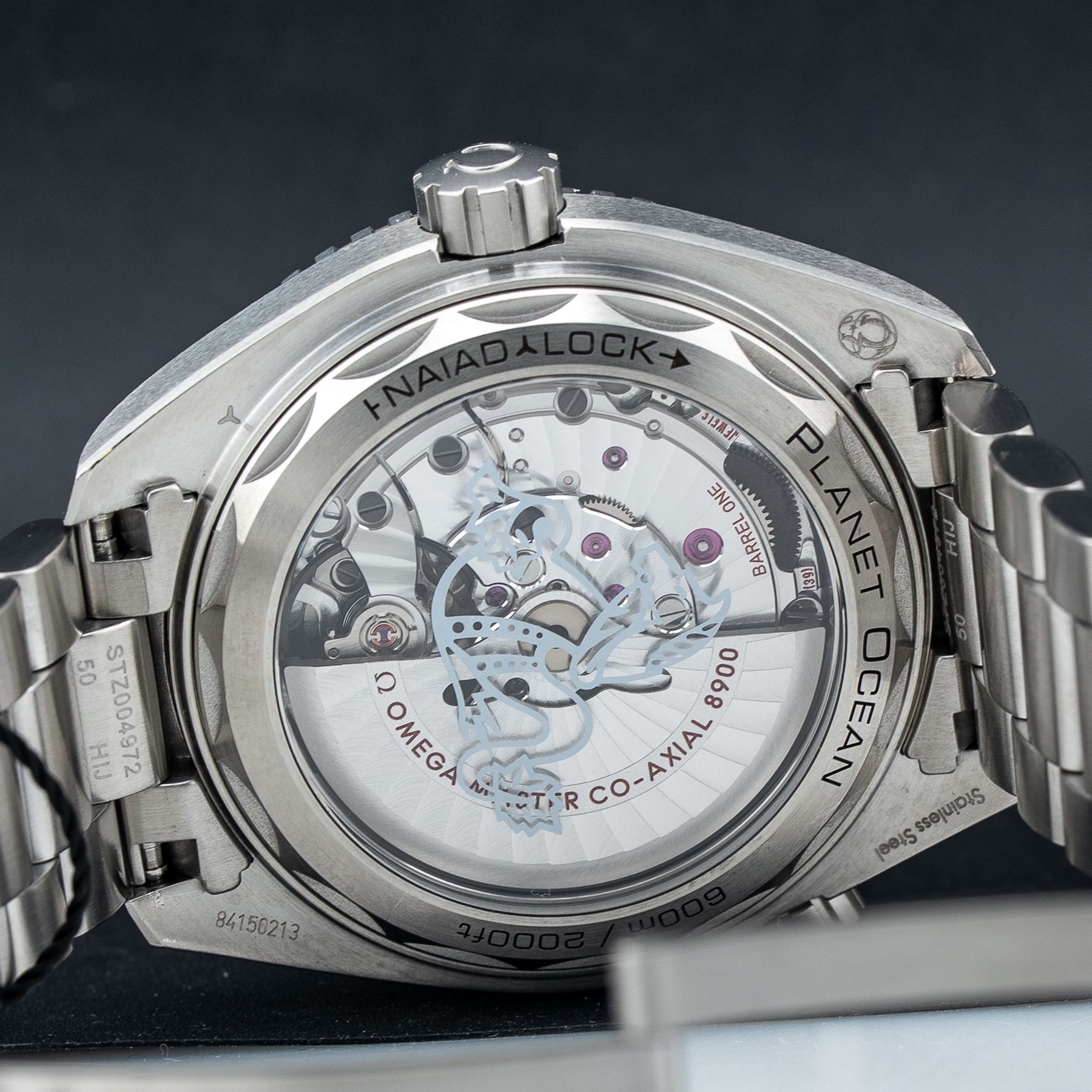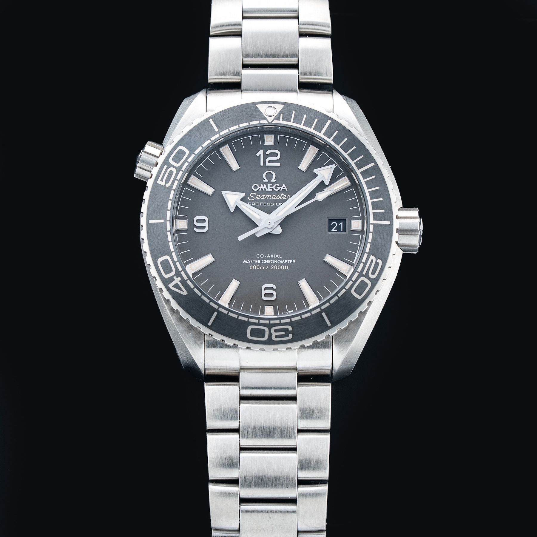 This watch features a 43.5mm stainless steel case on bracelet. This watch also sports a grey dial. Powered by a mechanical automatic movement. Water resistance up to 600 meters.