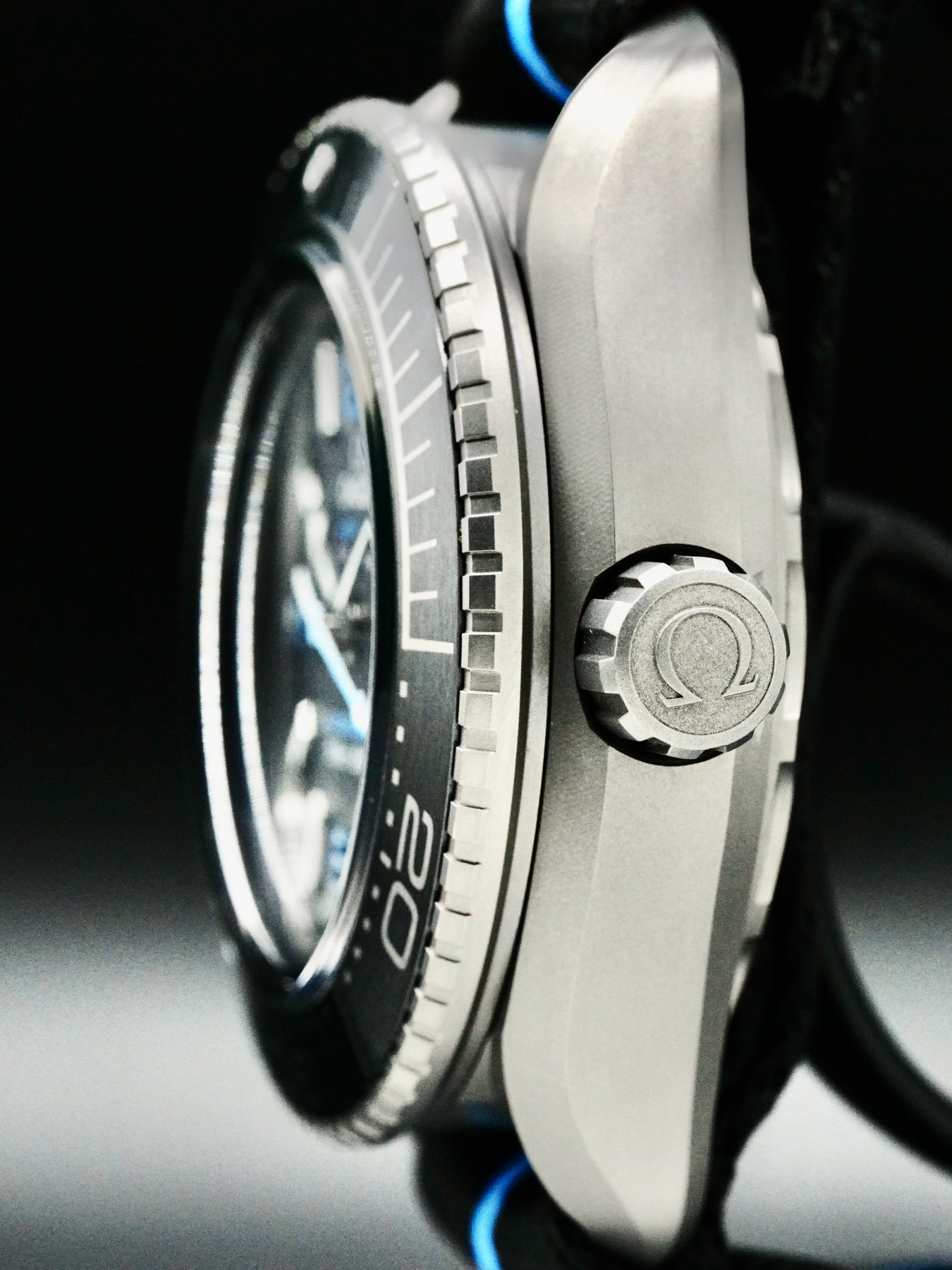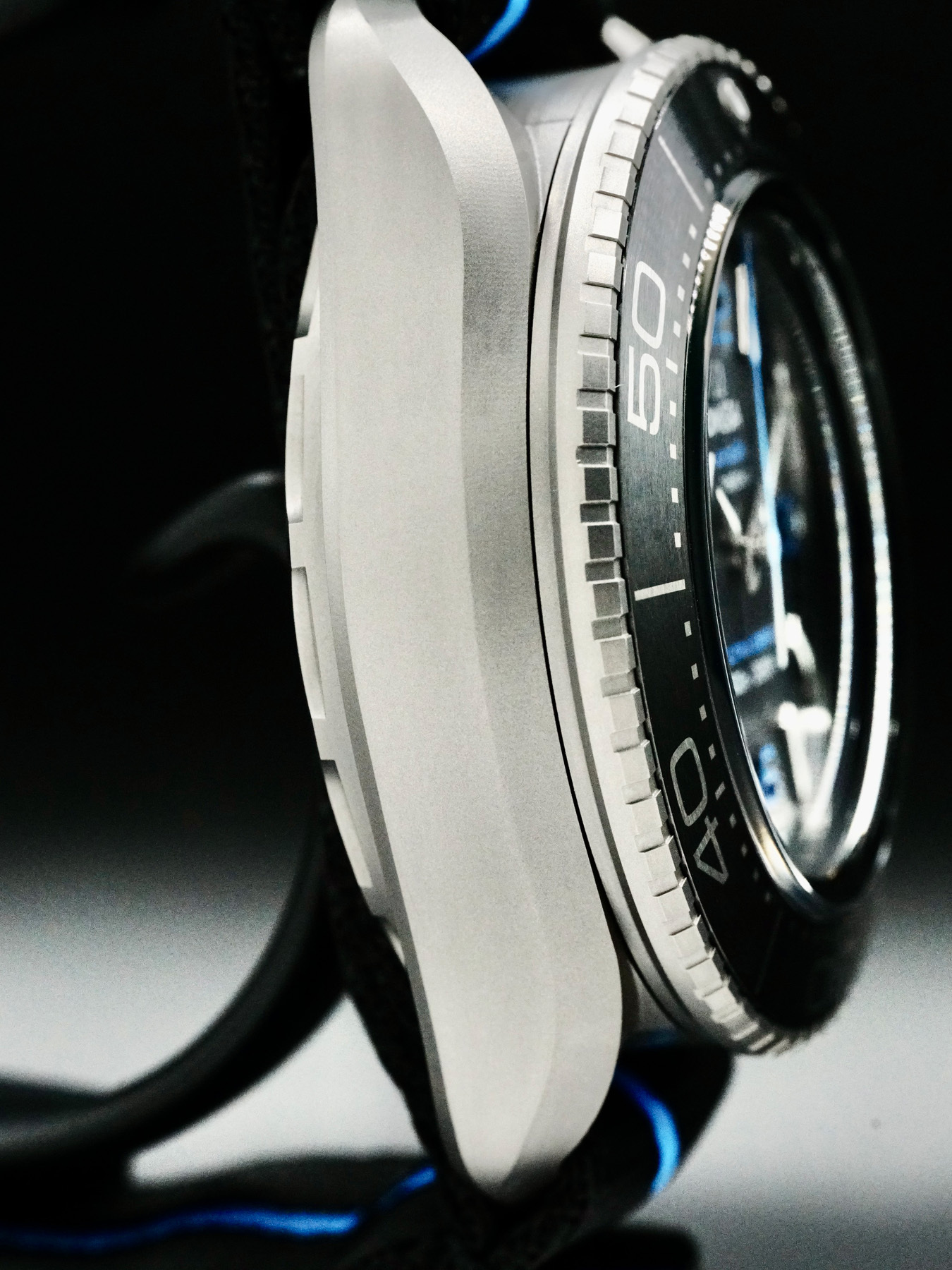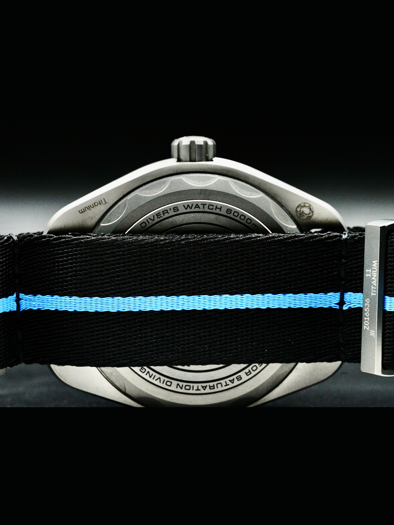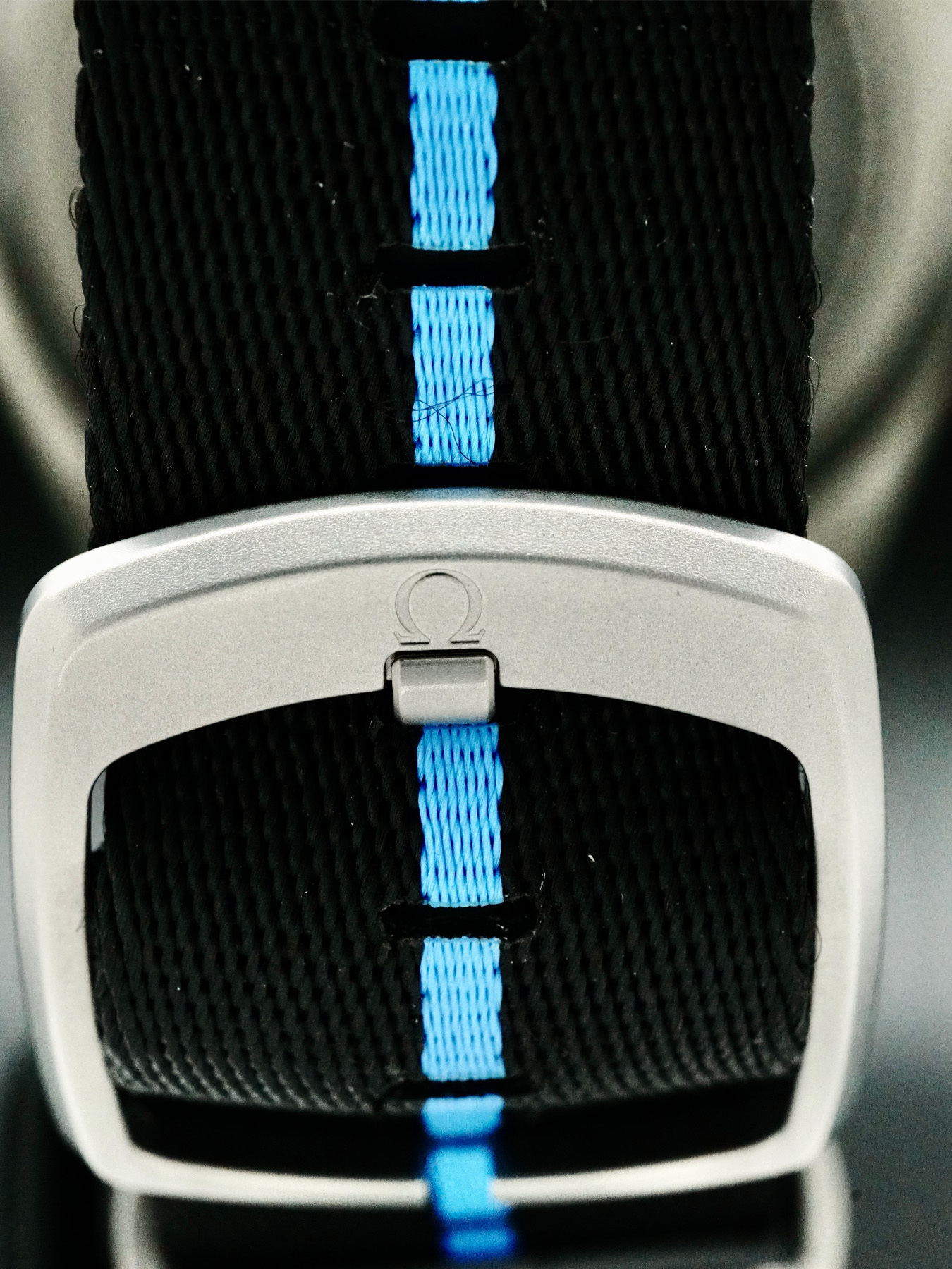 The watch includes distinctive “Manta Lugs” at each end of the case, which hold on to a striped black and cyan polyamide NATO strap with a loop and buckle in Grade 5 Titanium. On the caseback, there is a Grade 5 titanium medallion, laser-engraved with a Sonar emblem featuring the iconic OMEGA Seahorse at its centre. Inside, the watch is driven by the OMEGA Co-Axial Master Chronometer Calibre 8912.