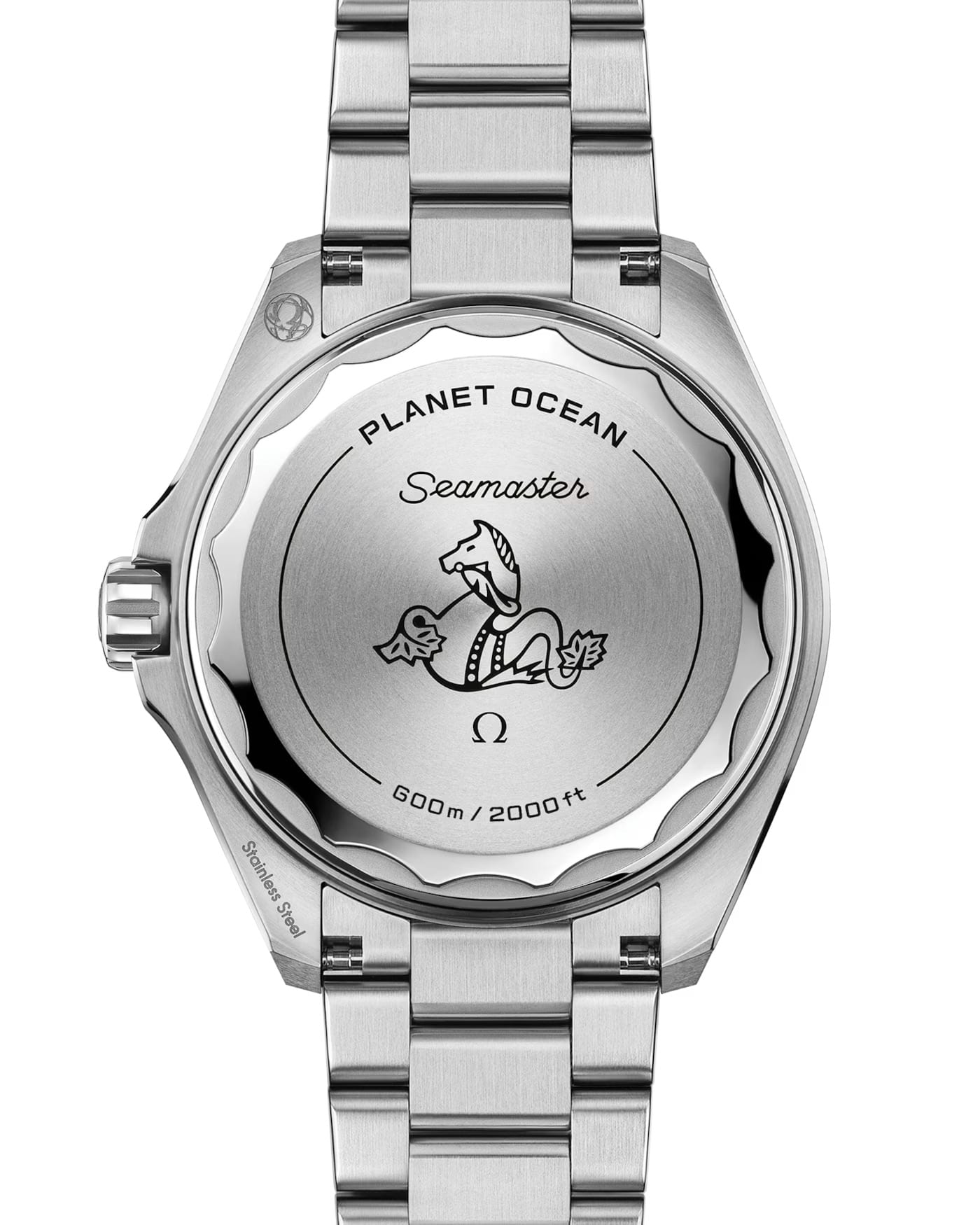 Powered by the Co-Axial Master Chronometer Calibre 8912, this Seamaster Planet Ocean is worn on a polished-brushed bracelet in stainless steel, featuring an extendable foldover rack-and-pusher with an extra diver extension. On the reverse side of the watch, the screw-in caseback is made from polished-brushed grade 5 titanium, and displays OMEGA’s famous seahorse emblem.