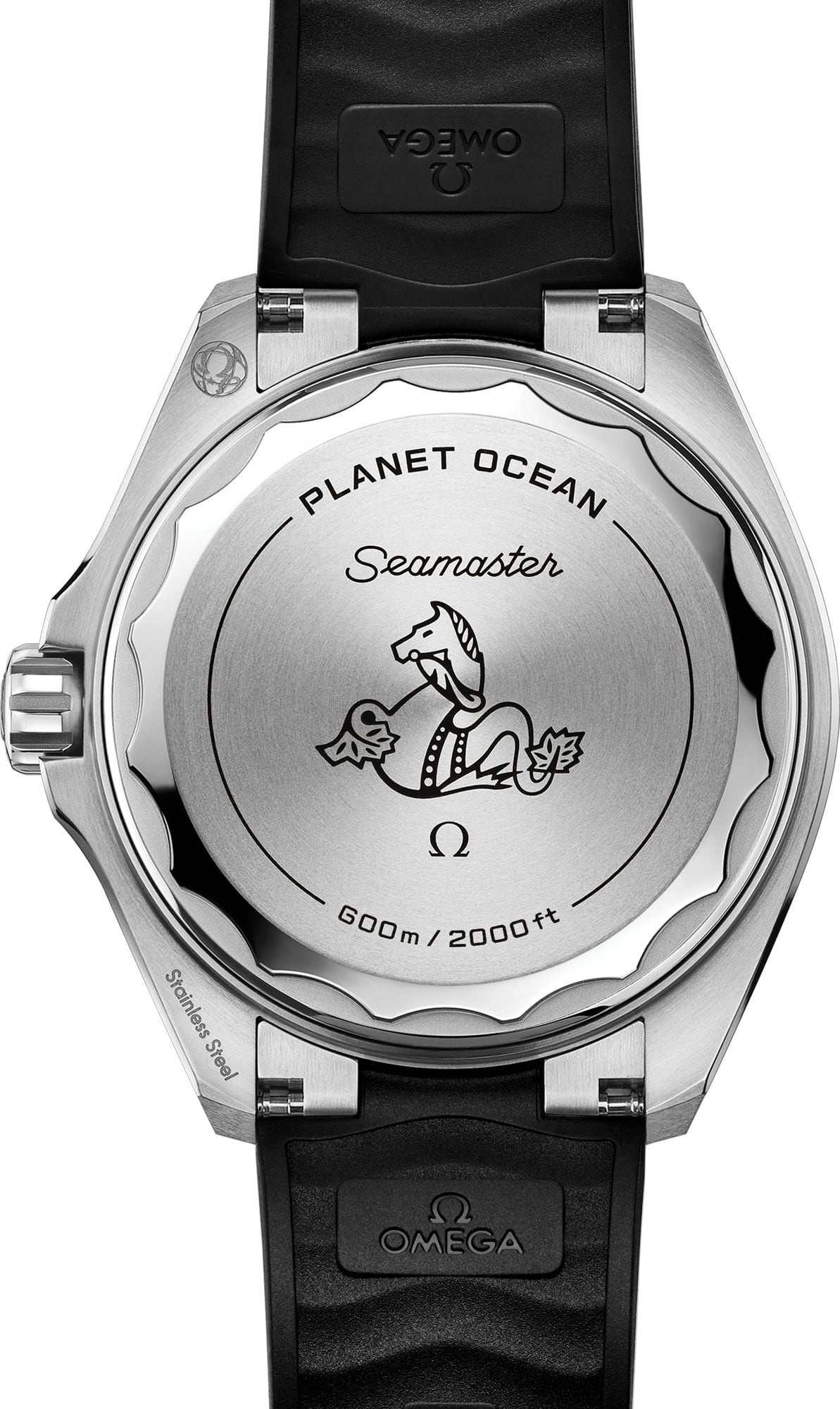 Powered by the Co-Axial Master Chronometer Calibre 8912, this Seamaster Planet Ocean is worn on a black rubber strap with a stainless steel link to the case and a foldover clasp. On the reverse side of the watch, the screw-in caseback is made from polished-brushed grade 5 titanium, and displays OMEGA’s famous seahorse emblem.