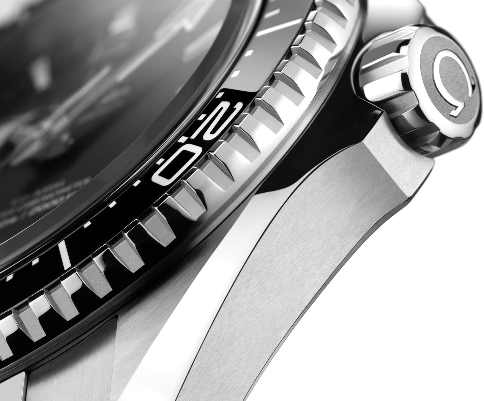 This 42 mm model is crafted with a case in polished-brushed stainless steel. It features a polished black ceramic bezel ring with a diving scale in white enamel, while the inner ring is made from polished grade 5 titanium.