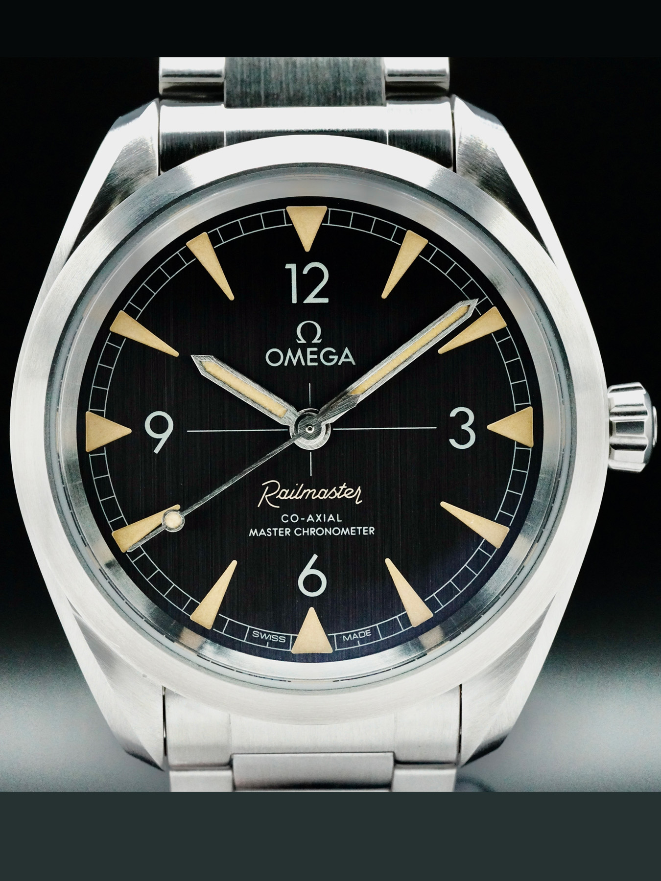 This Omega 220.10.40.20.01.001 Railmaster Co-Axial Master Chronometer is in GREAT condition. This watch includes its Original Box, Original Papers and Warranty Card Not Dated. This watch has been fully authenticated and certified by Exquisite Timepieces.