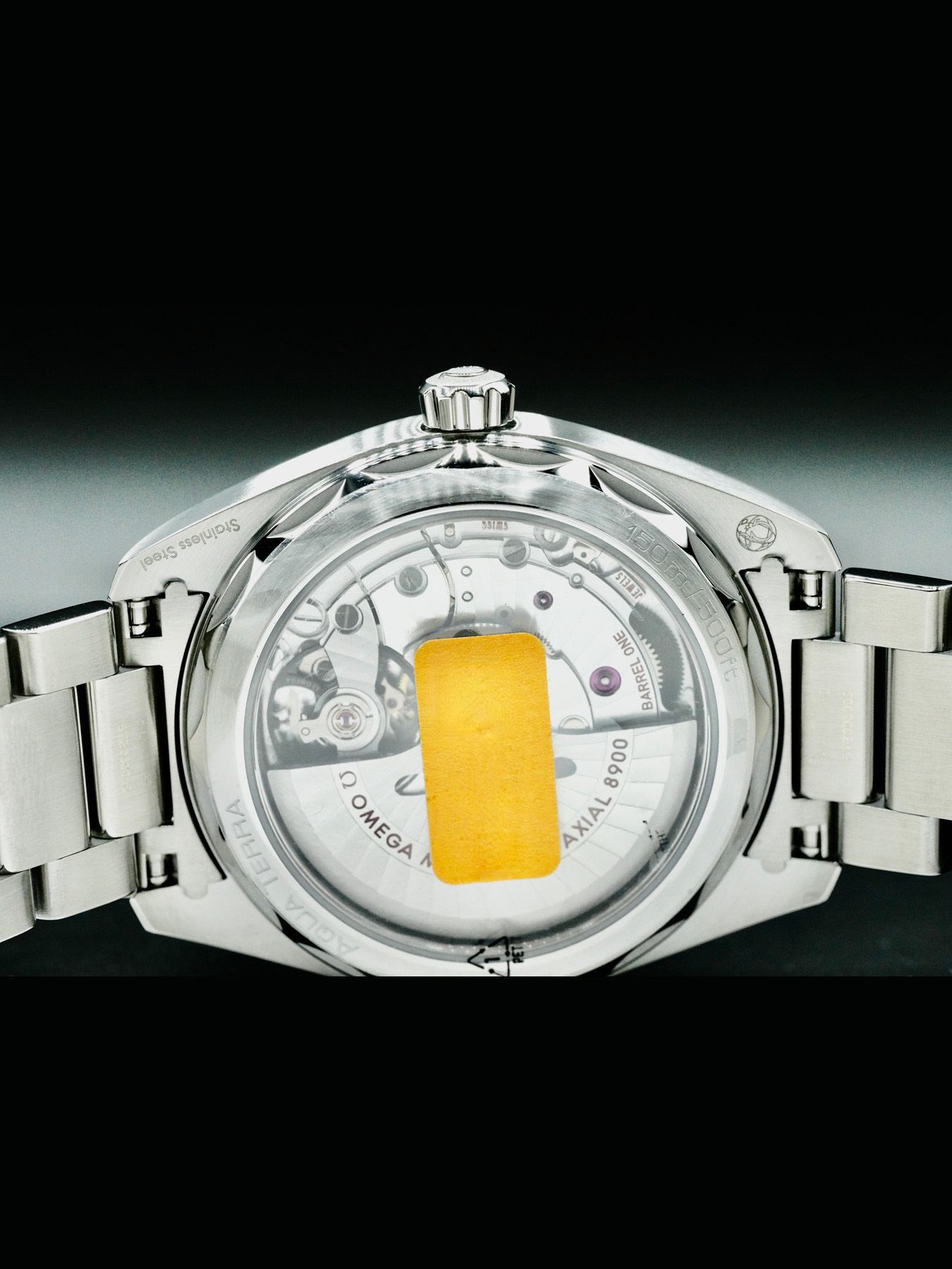 This Omega Aqua Terra 150M Co-Axial Master Chronometer 220.10.41.21.03.002 is in EXCELLENT condition. This watch includes its original box, operating instructions, and international warranty dated for April 2023.