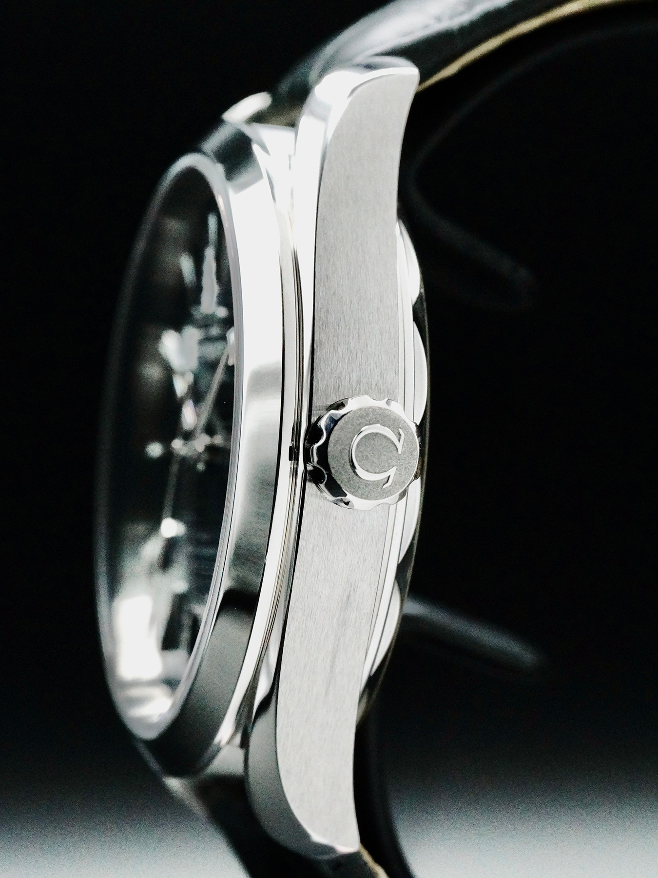 This watch features a 41 mm stainless steel case on leather strap. This watch also sports a green dial. Powered by a mechanical automatic, caliber omega 8900 movement. Water resistance up to 150 meters.