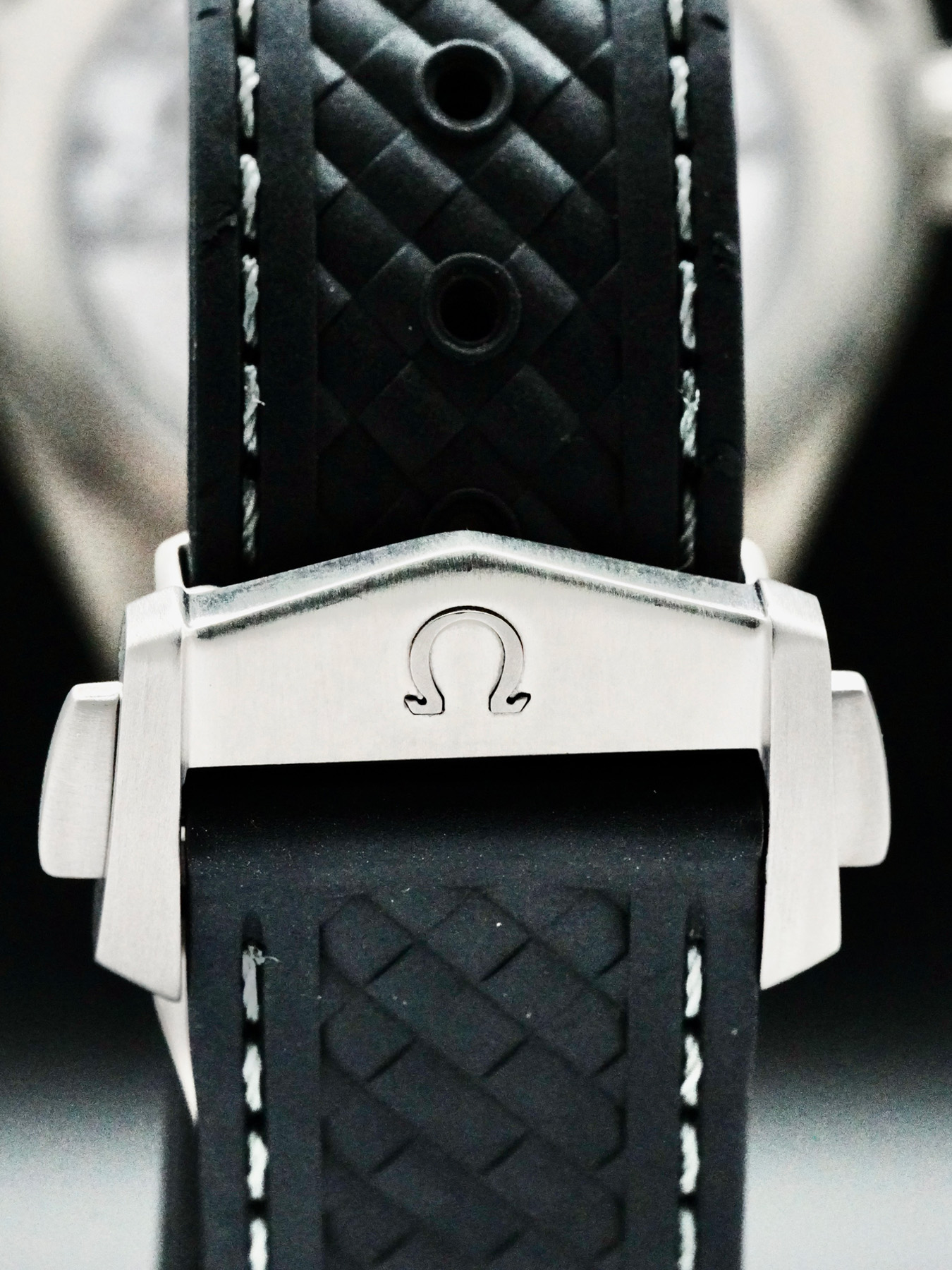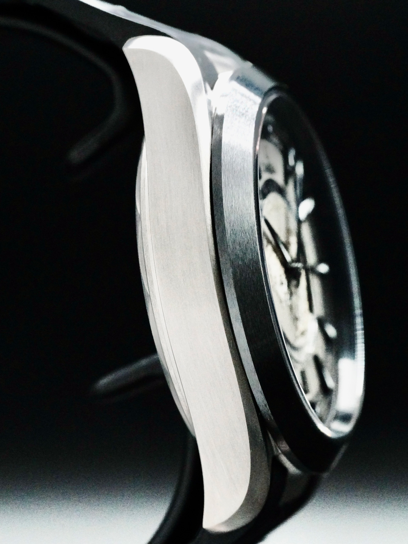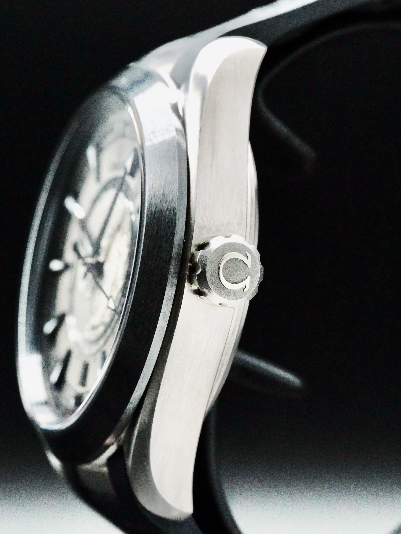 This watch features a 43 mm titanium case on rubber strap. This watch also sports a black dial. Powered by a mechanical automatic movement. Water resistance up to 150 meters.
