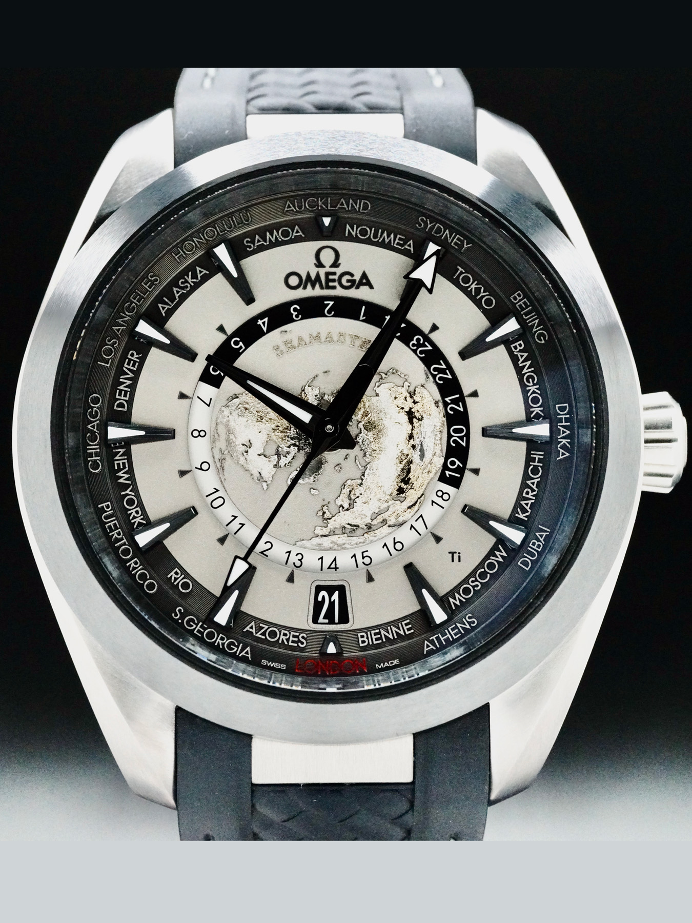 This Omega 220.92.43.22.99.001 Seamaster Aqua Terra 150M Worldtimer is in EXCELLENT condition. This watch includes its Original Box, Original Papers and Warranty Card Dated 2023. This watch has been fully authenticated and certified by Exquisite Timepieces.