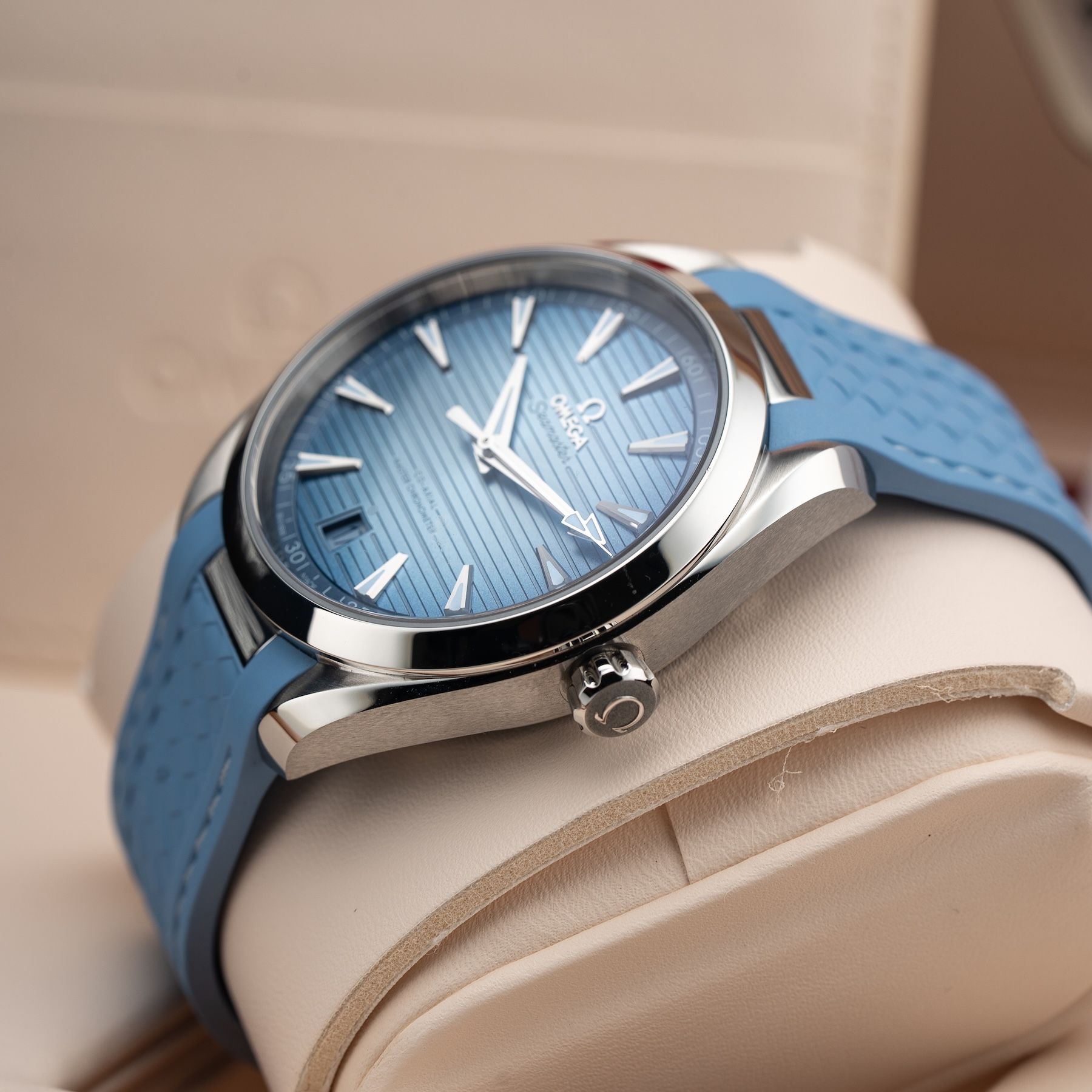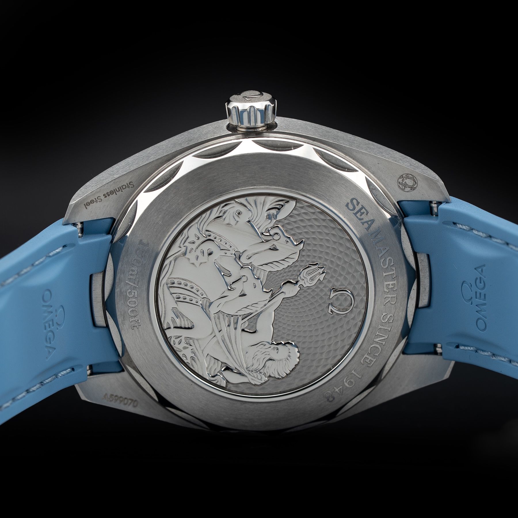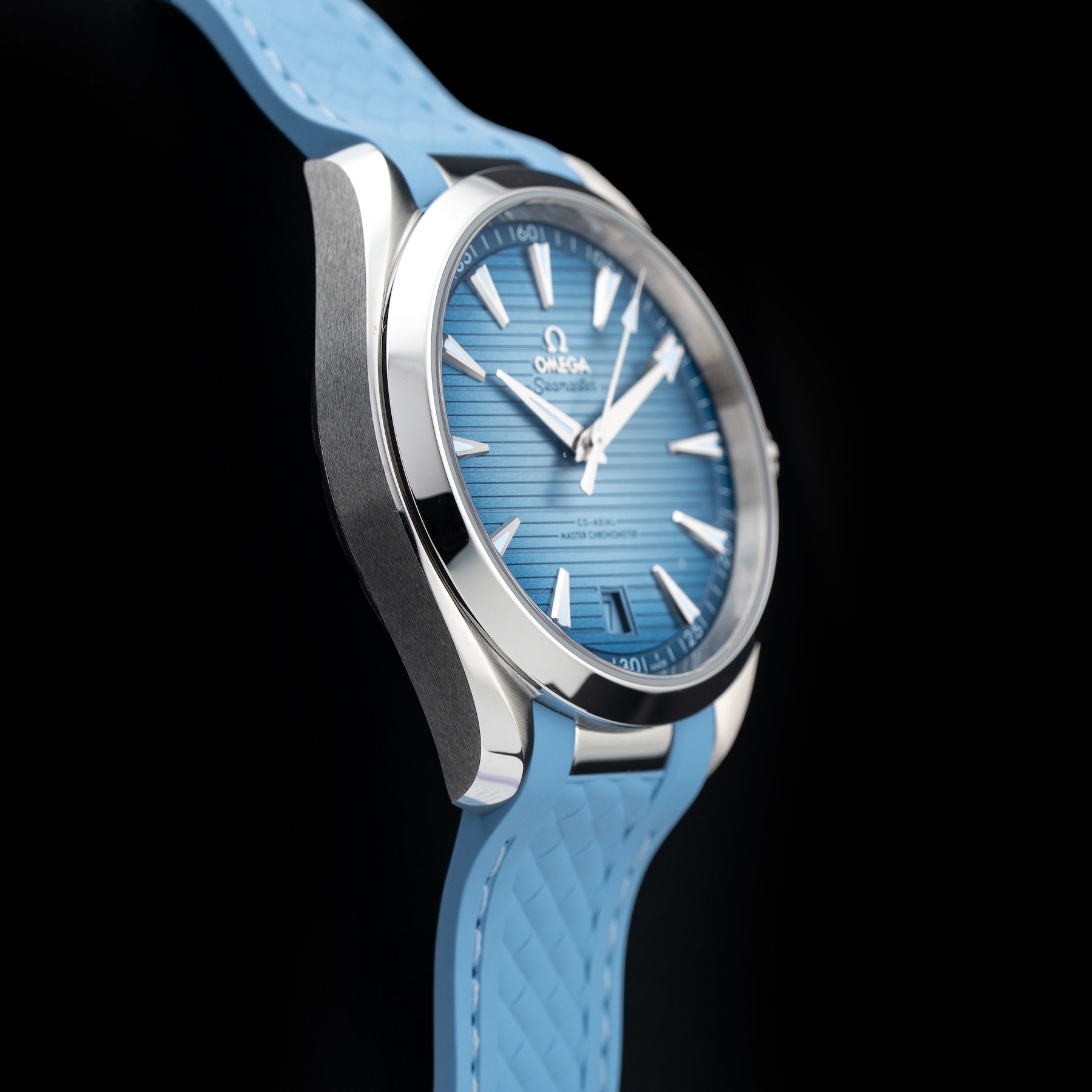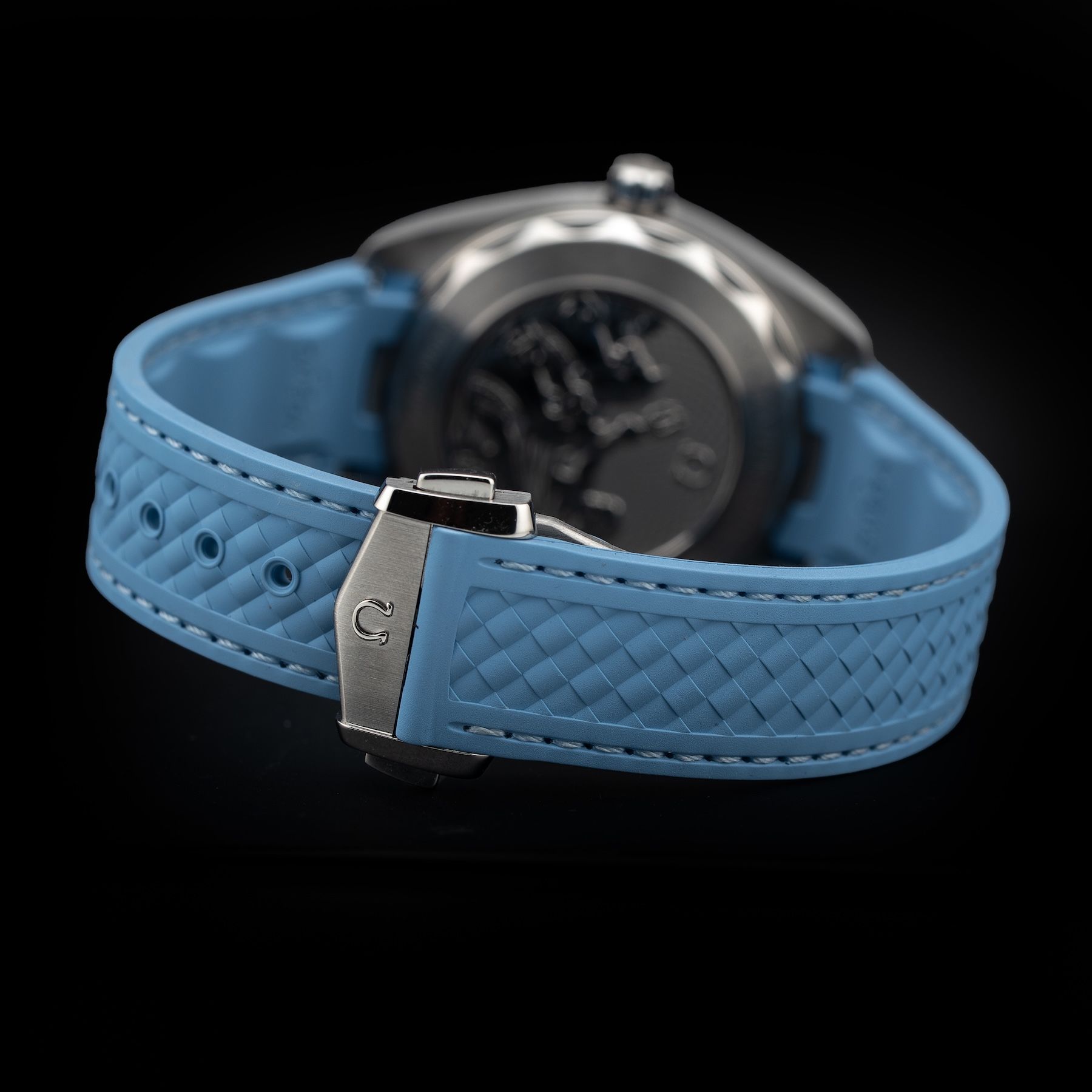 This watch features a 41mm stainless steel case on rubber strap. This watch also sports a summer blue dial. Powered by a mechanical automatic movement. Water resistance up to 150 meters.