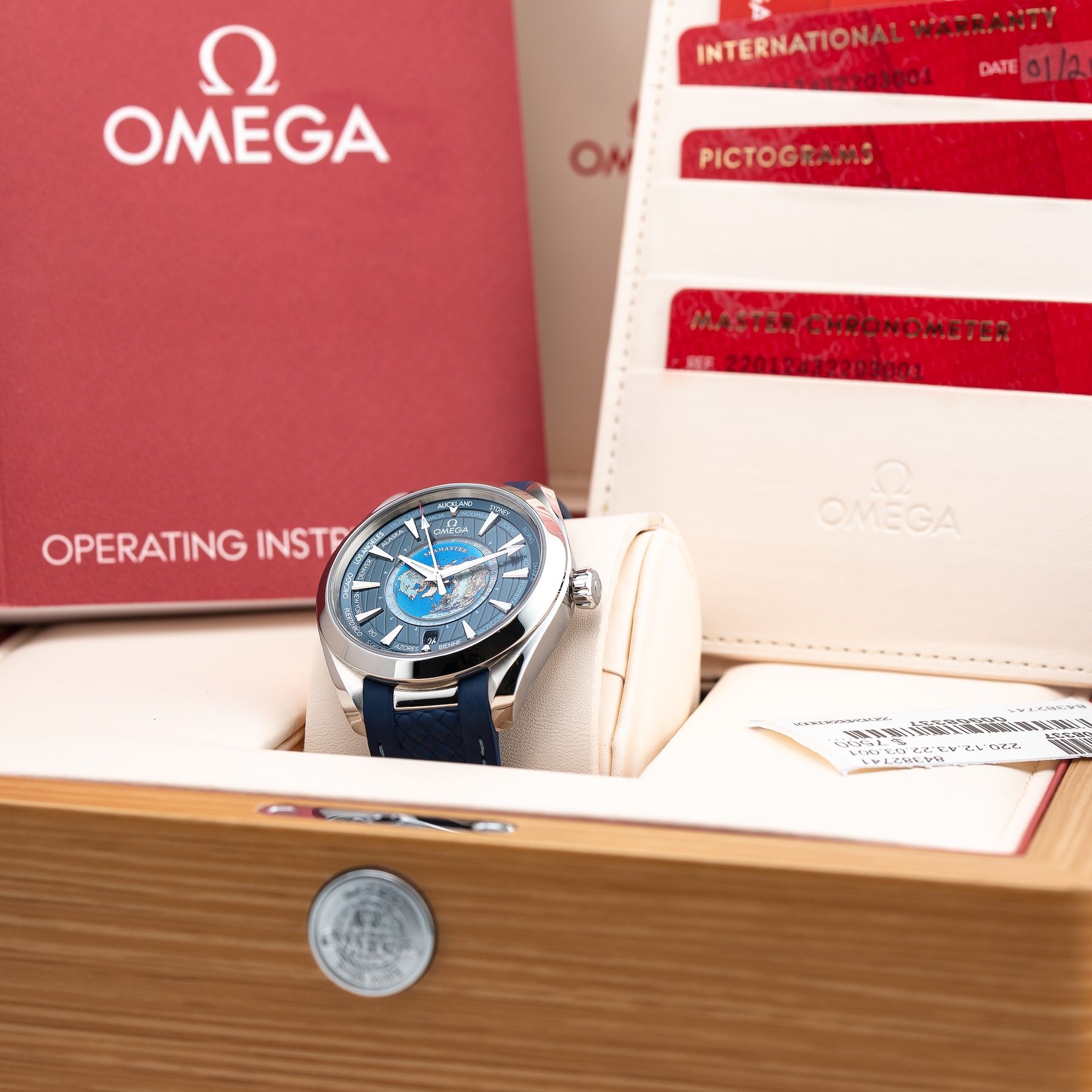 This Omega 220.12.43.22.03.001 Seamaster Aqua Terra 150m GMT World Timer 43mm is in GREAT condition it has boxes, papers and warranty card dated 2023. This watch has been fully authenticated and certified by Exquisite Timepieces. Please note, the photos shown are of the actual watch you will receive.