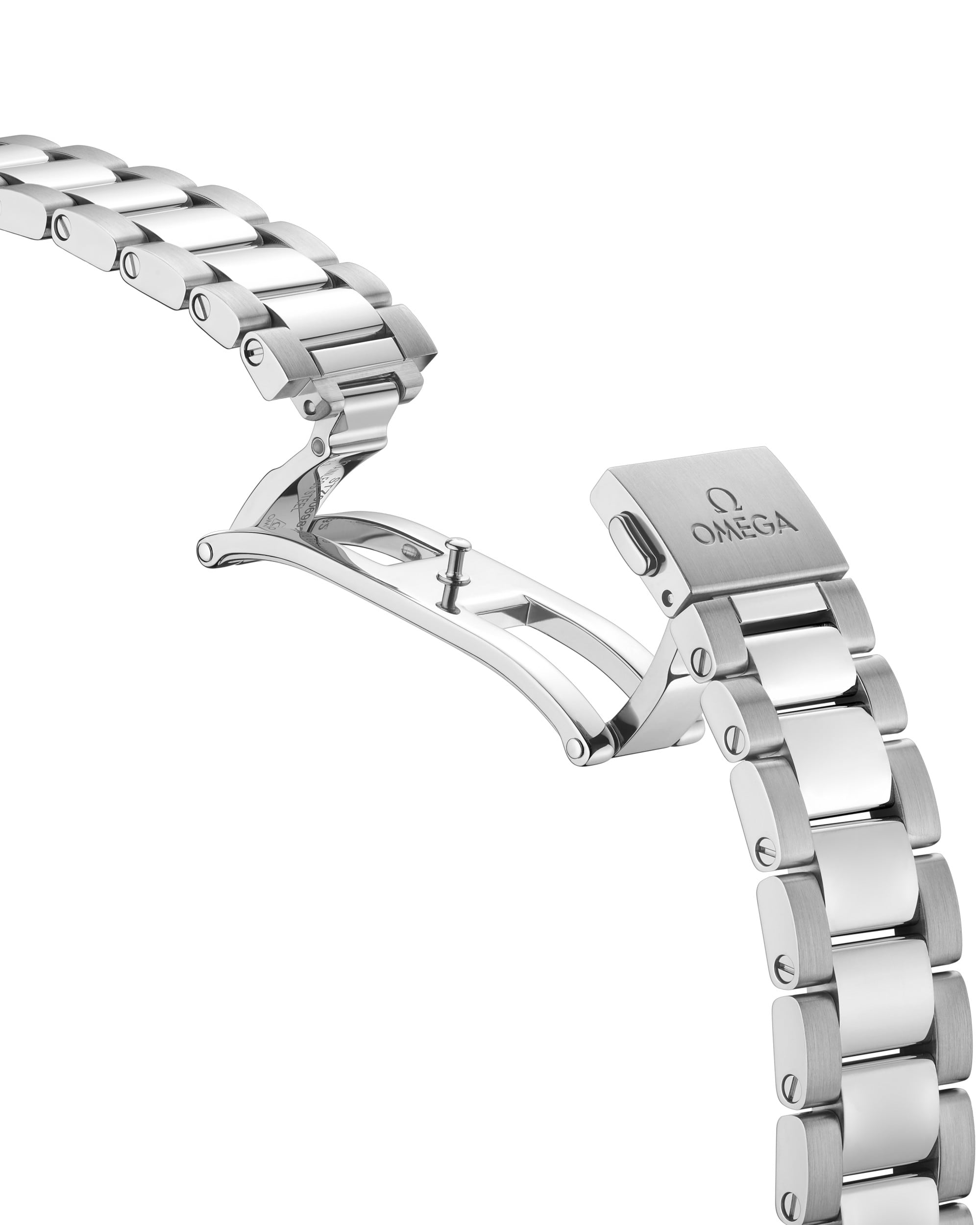The bezel is diamond-set and the watch is presented on an integrated stainless steel bracelet. Driven by the OMEGA Co-Axial Master Chronometer calibre 8800, this wristwatch is certified at the industry’s highest standard by the Swiss Federal Institute of Metrology (METAS).