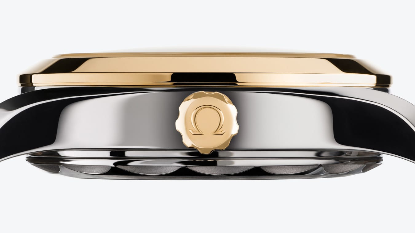 OMEGA created the exclusive Moonshine™ Gold, an 18K yellow gold alloy, in 2019. Inspired by the shining moonlight in a dark blue sky, OMEGA's 18K Moonshine™ Gold offers a distinctive paler hue than traditional 18K yellow gold and high resistance to the fading of colour and lustre over time. Its unique composition includes silver, copper and palladium for colour and stability.