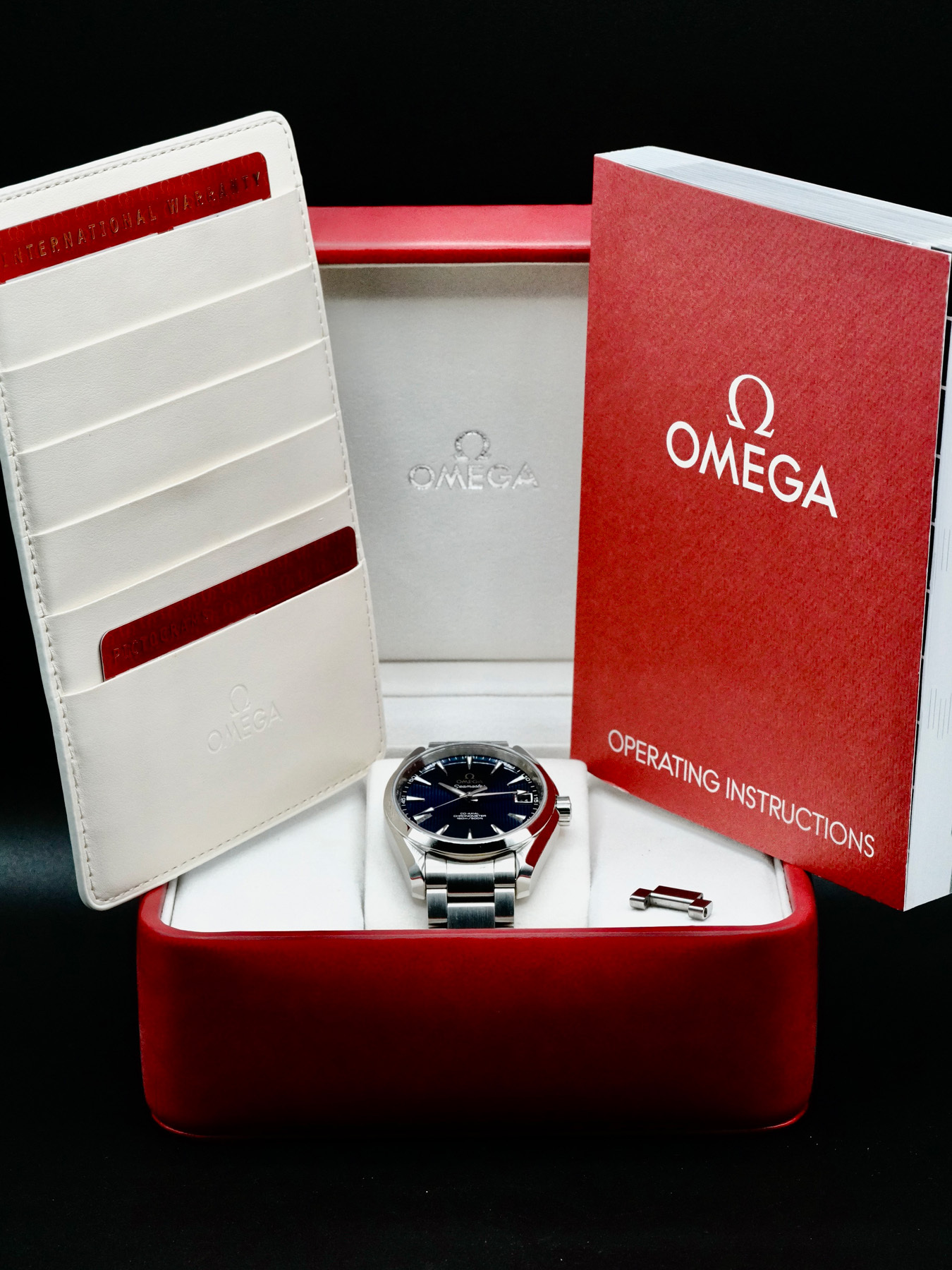 This Omega Seamaster Aqua Terra 150M 231.10.39.21.03.001 is in GREAT condition. This watch includes its original box, operating instructions, and warranty card dated for 2014. Extra stainless steel bracelet link. This watch has been fully authenticated and certified by Exquisite Timepieces.