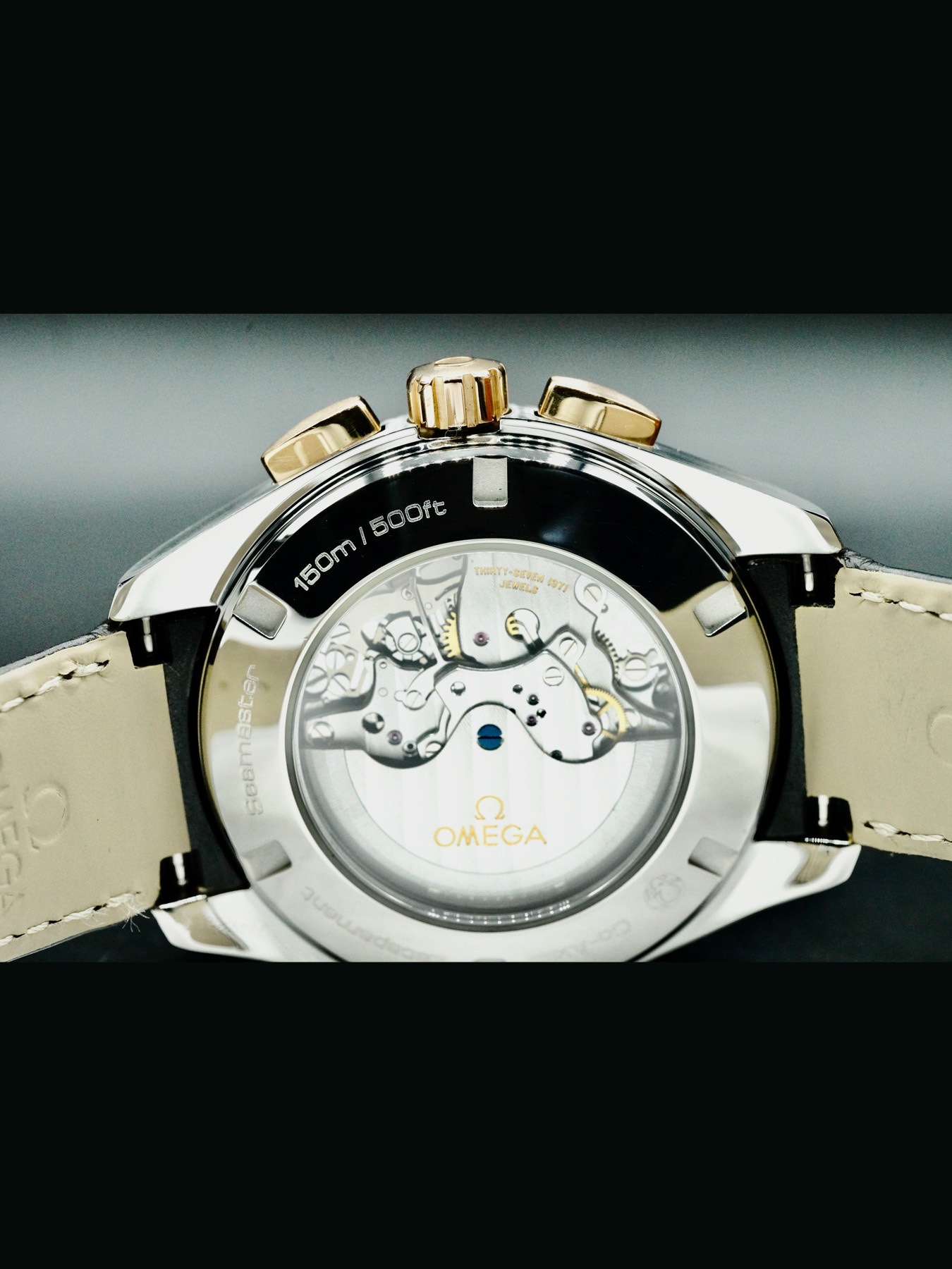 This Omega 231.23.44.50.06.001 Aqua Terra Chronograph is in EXCELLENT condition. This watch includes original box, instruction booklet and warranty card dated 2010.