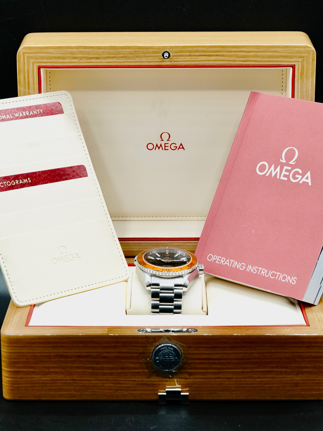 This Omega 232.30.46.21.01.002 Seamaster Planet Ocean is in GREAT condition. It has Has box and papers, warranty dated April 2016.